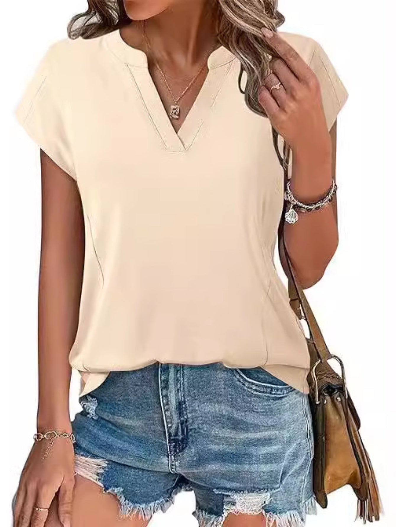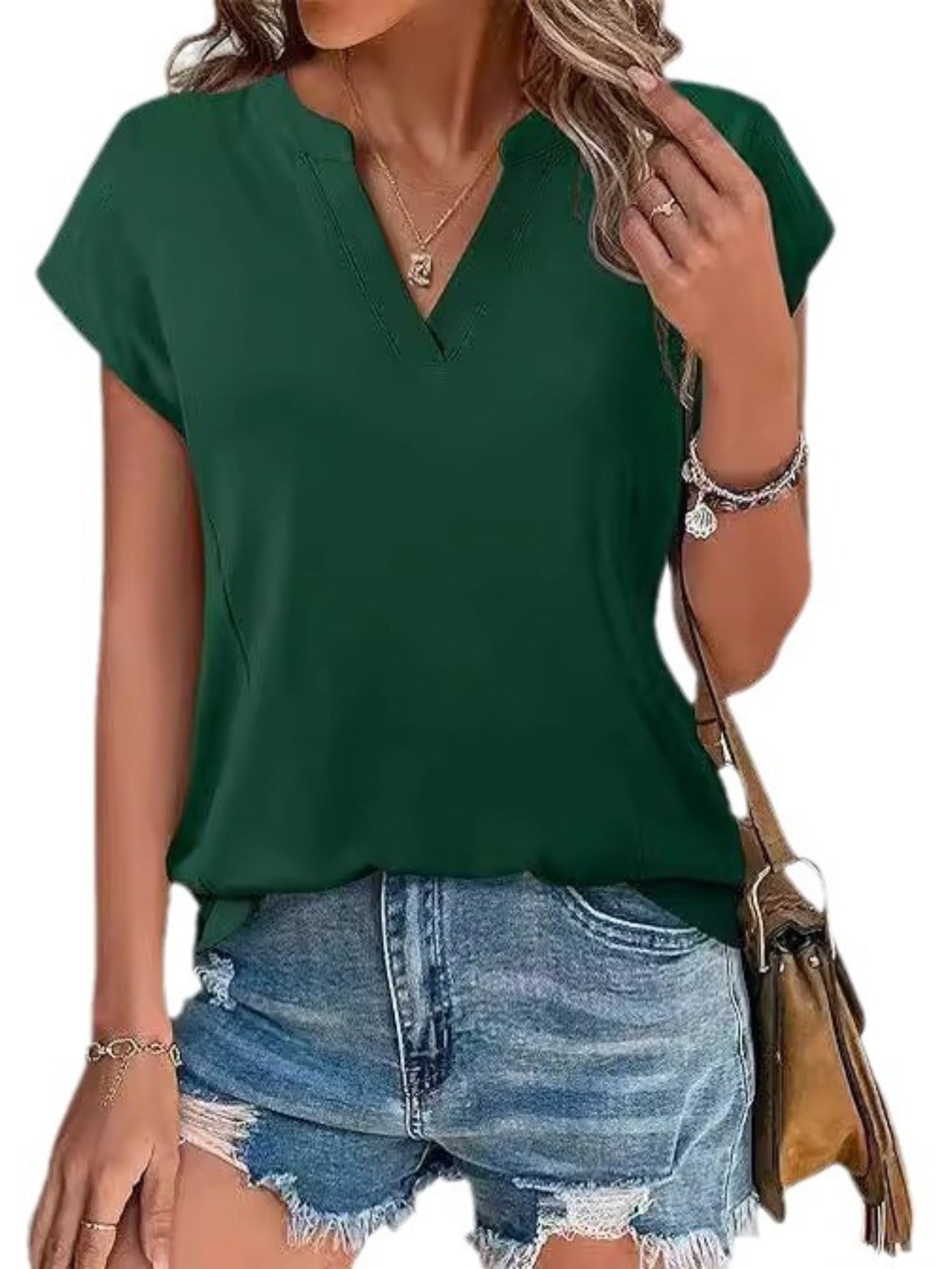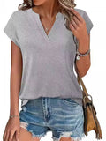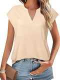 V neck T-shirt Summer Ladies Casual Tops Blouse Tunic Solid Plain Pullover Tee