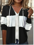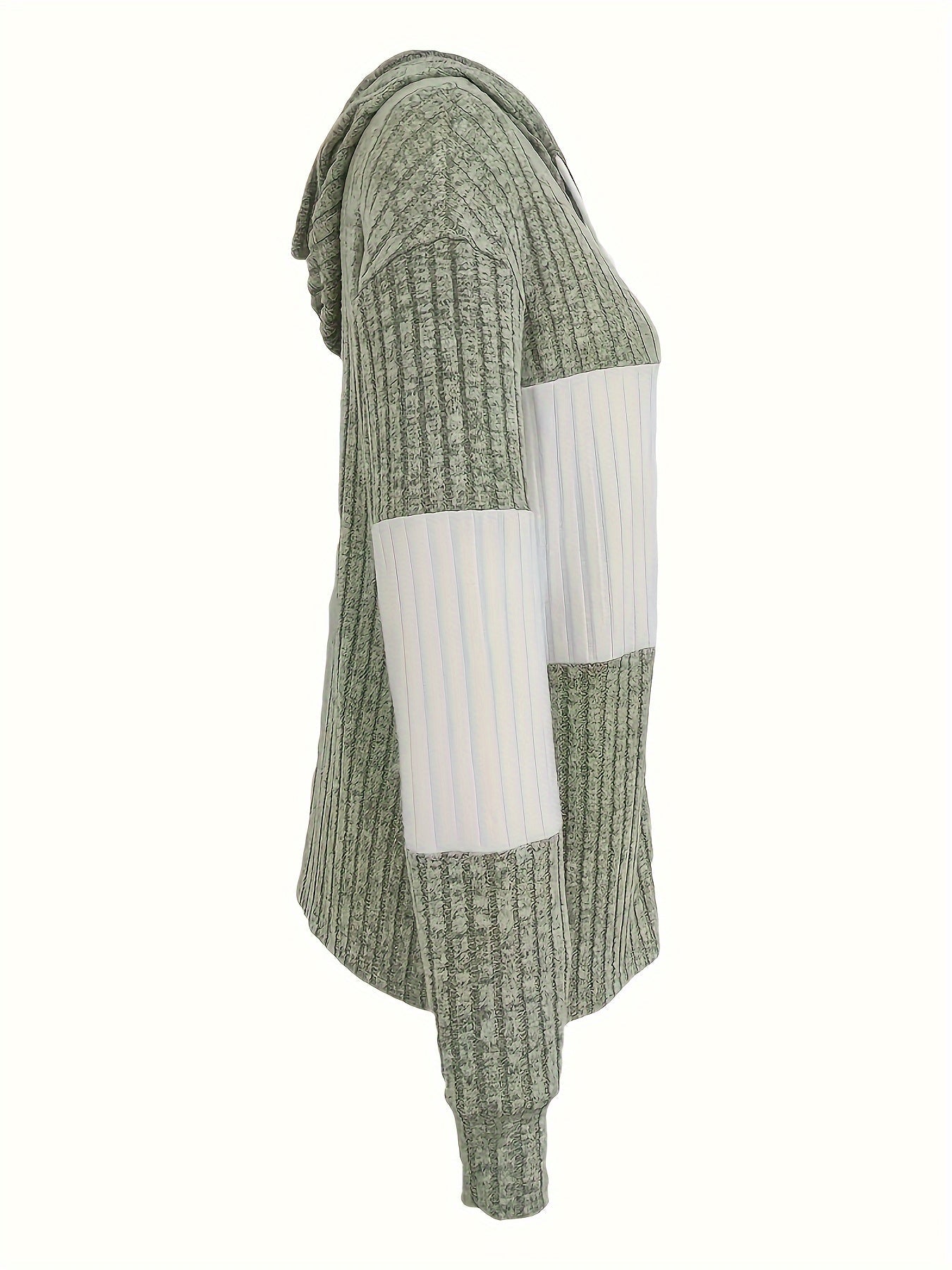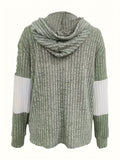 Vibrant Color Block Rib Knit Hoodie - Soft, Cozy, and Casual Long Sleeve Sweatshirt with Drawstring and Zip Up Closure