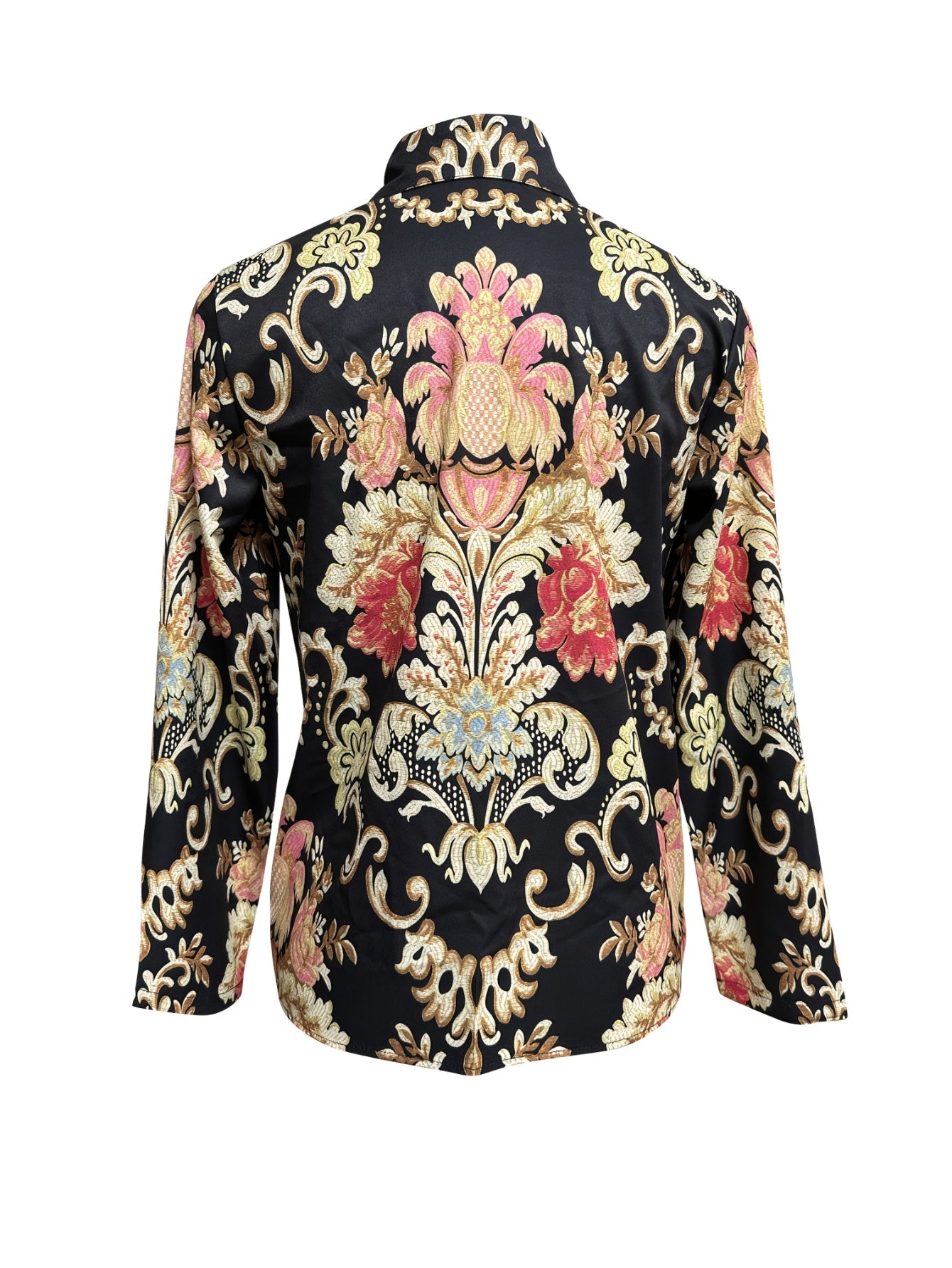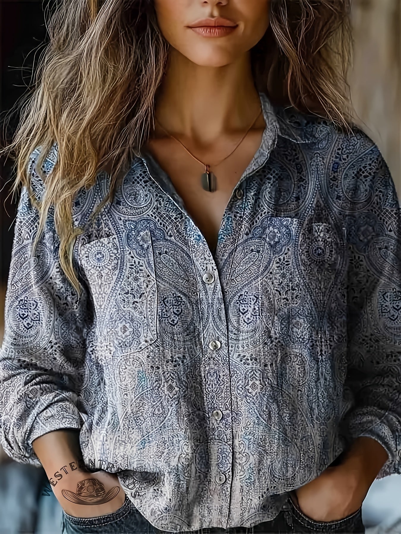 Vibrant Paisley & Floral Print Women's Long Sleeve Blouse