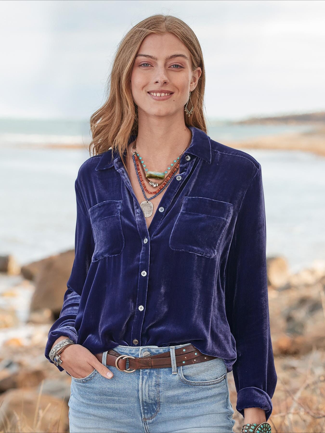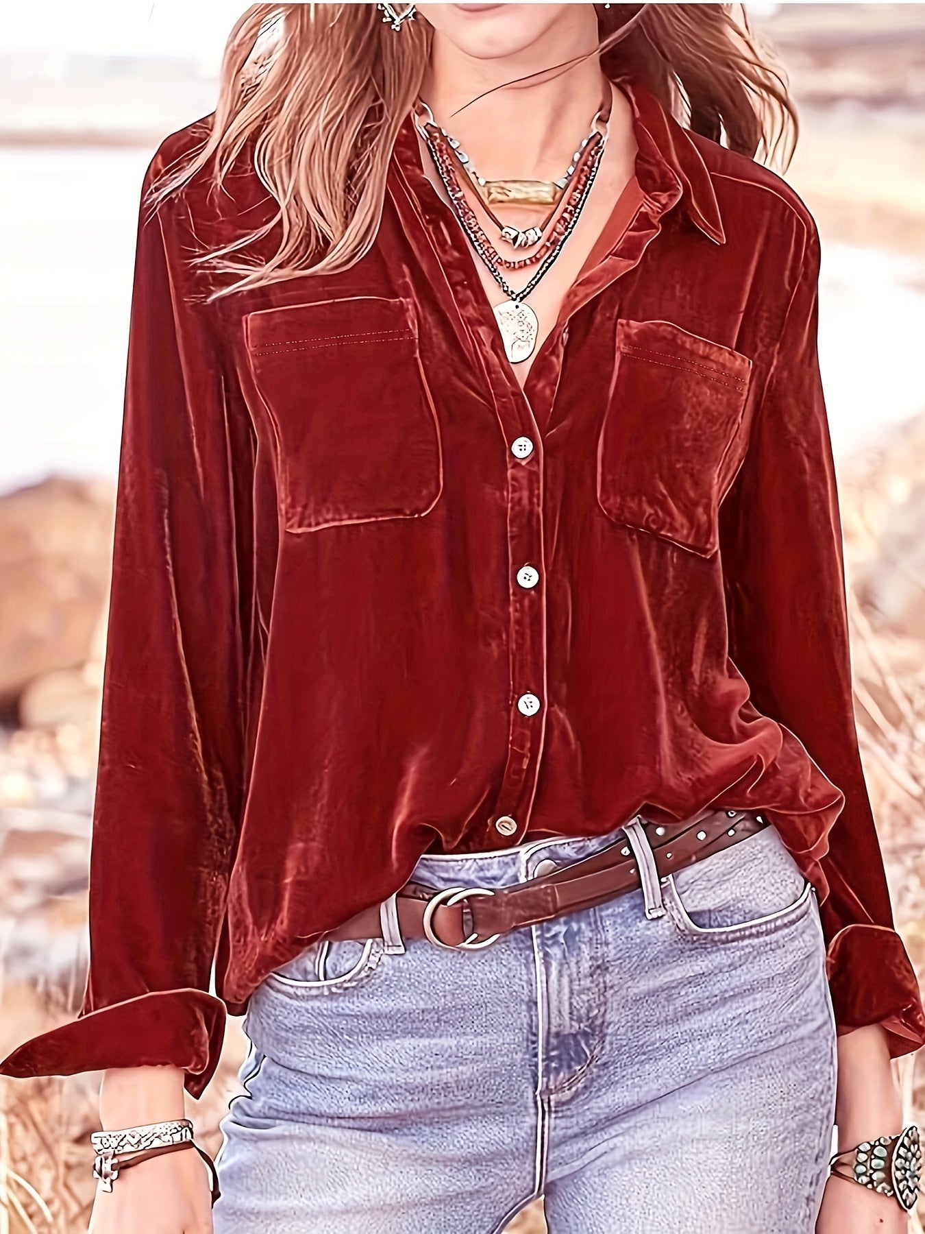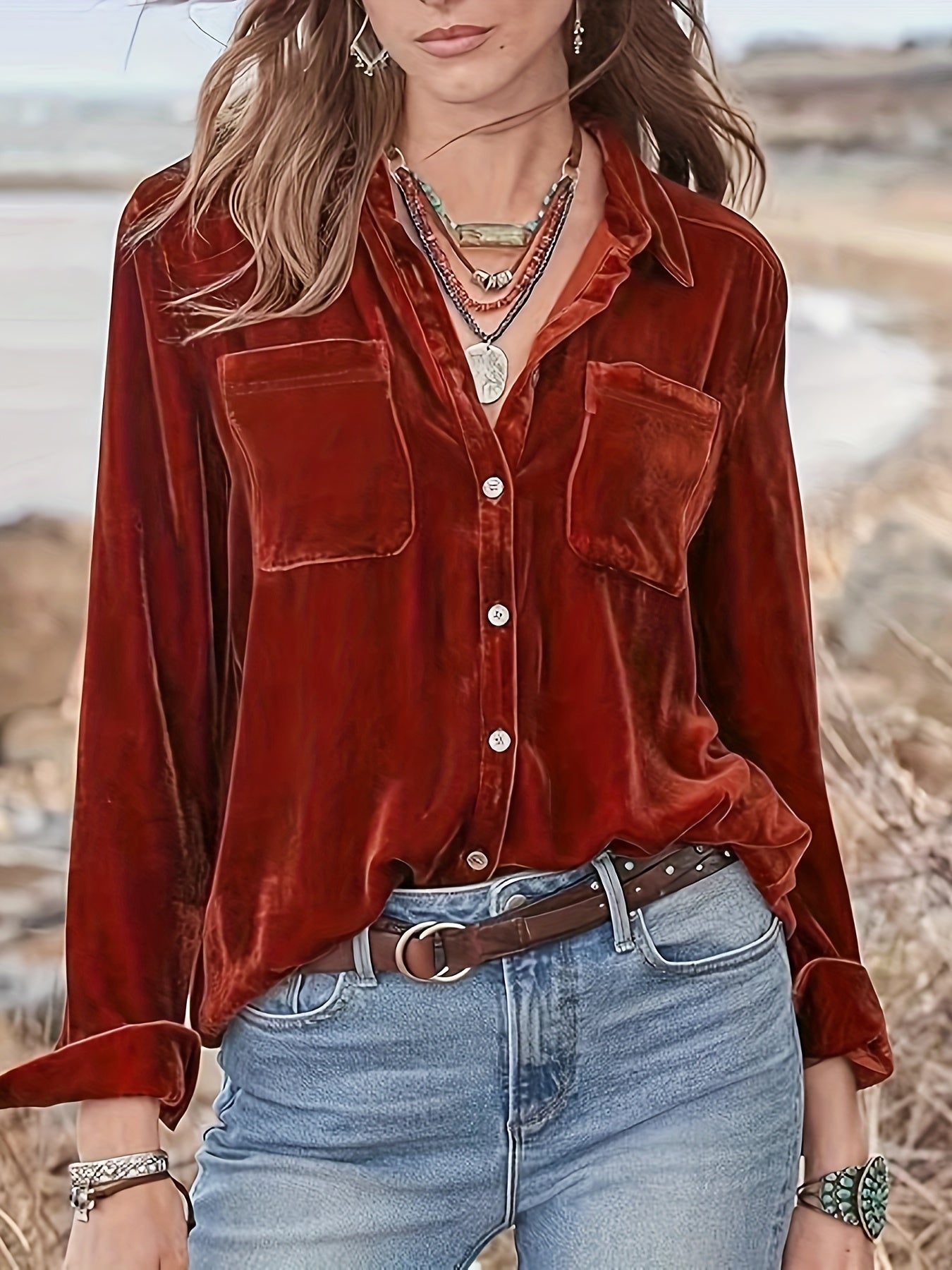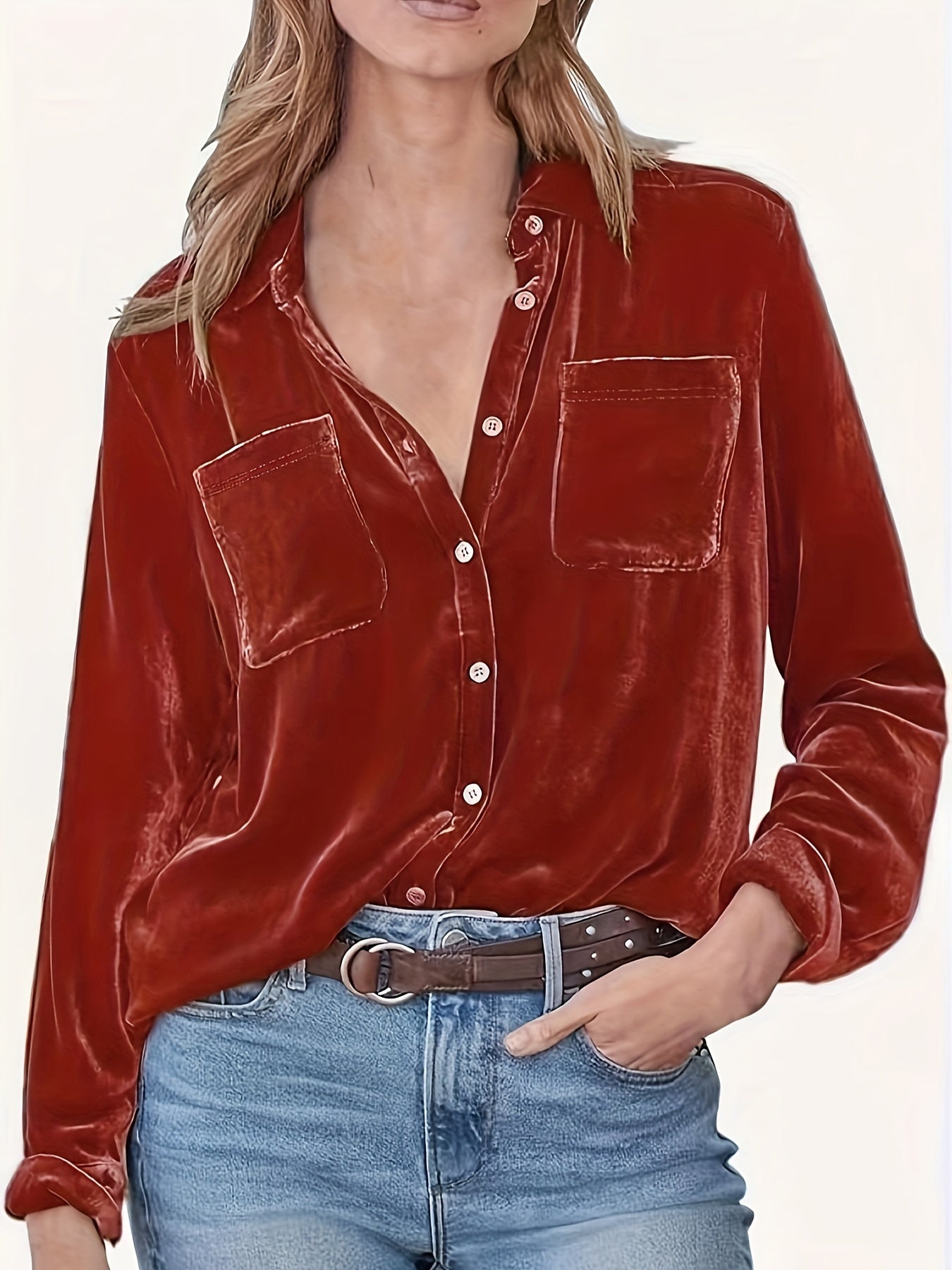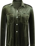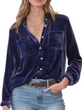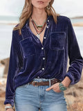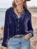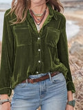 Vintage Chic Velvet Shirt - Soft, Patched Pockets, Long Sleeve, Comfortable Fit