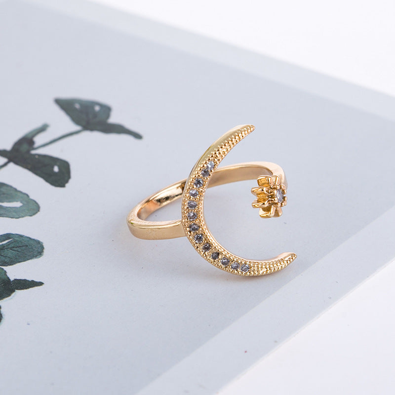 Type: Ring Product Category: Hand Accessories Style: Female Material: Copper Shape: The moon Popular element:...