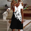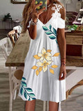 Sale Women's Feather Print Crew Neck Blouse - Casual Cut Out Short Sleeve Top