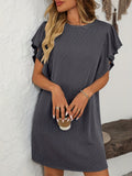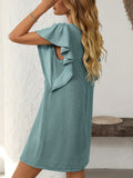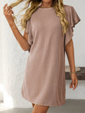 Vertical Striped Ruffle Sleeve Midi Dress