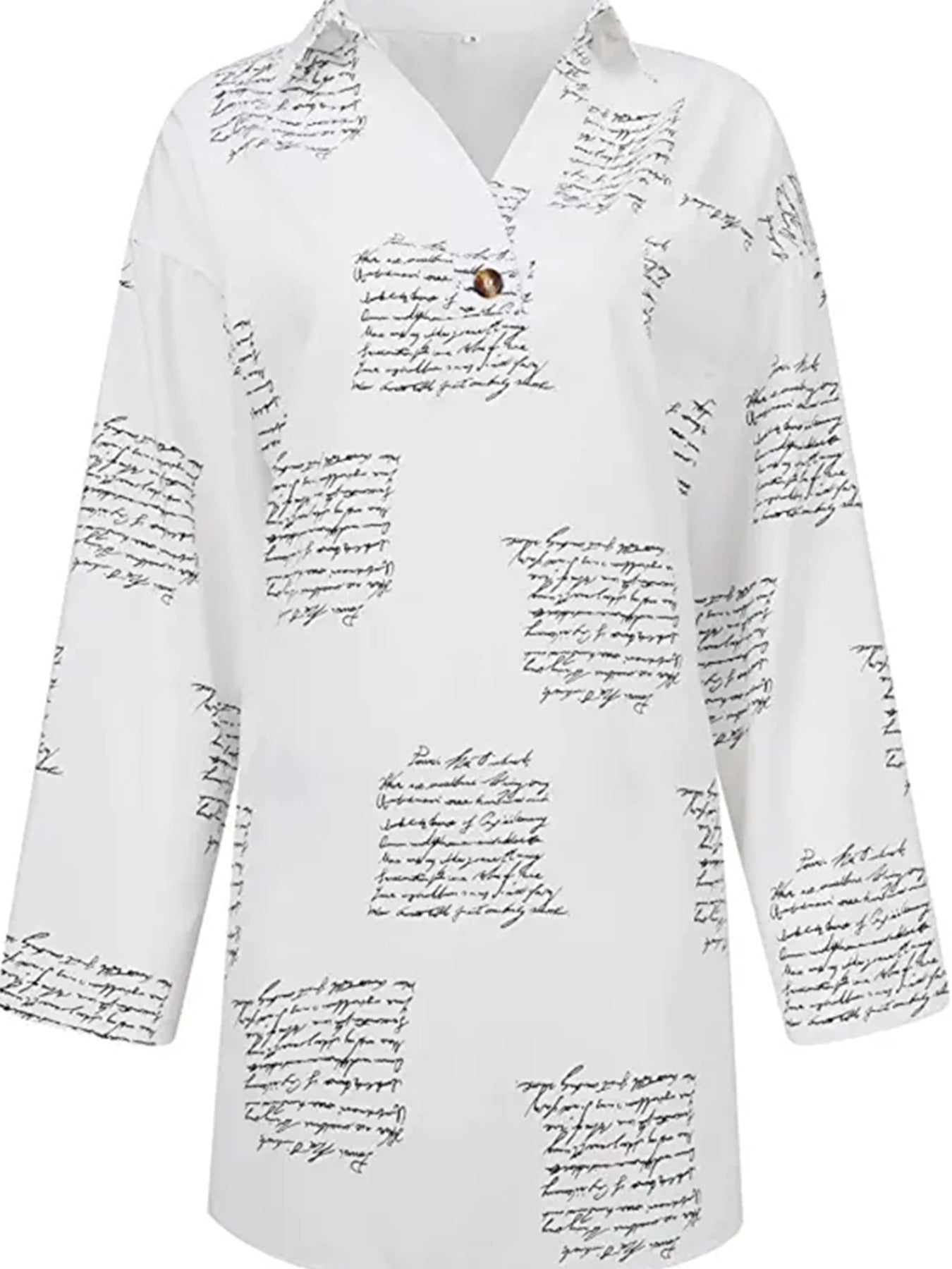 Women's Blouses Bohemian Knee Length Linen Blouses Loose Neck Button Pocket Casual V Neck Blouses