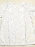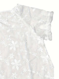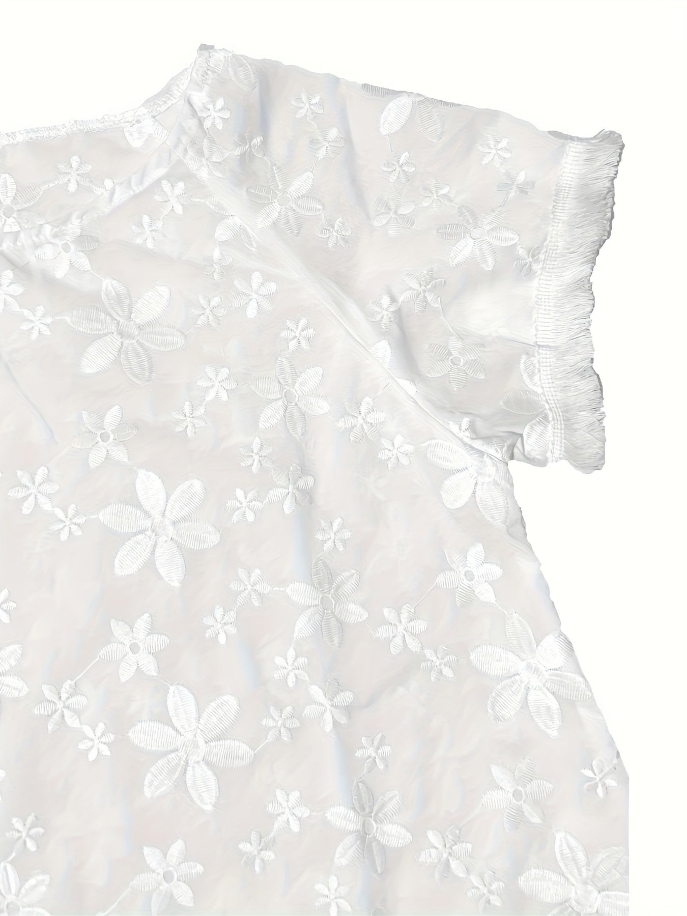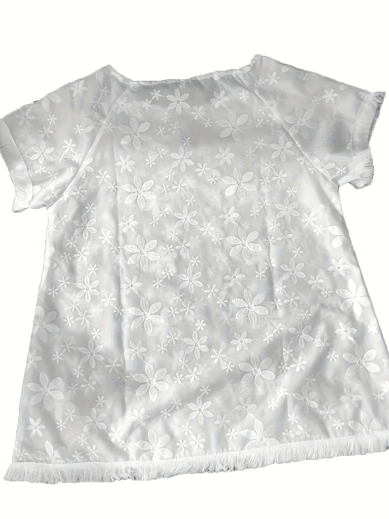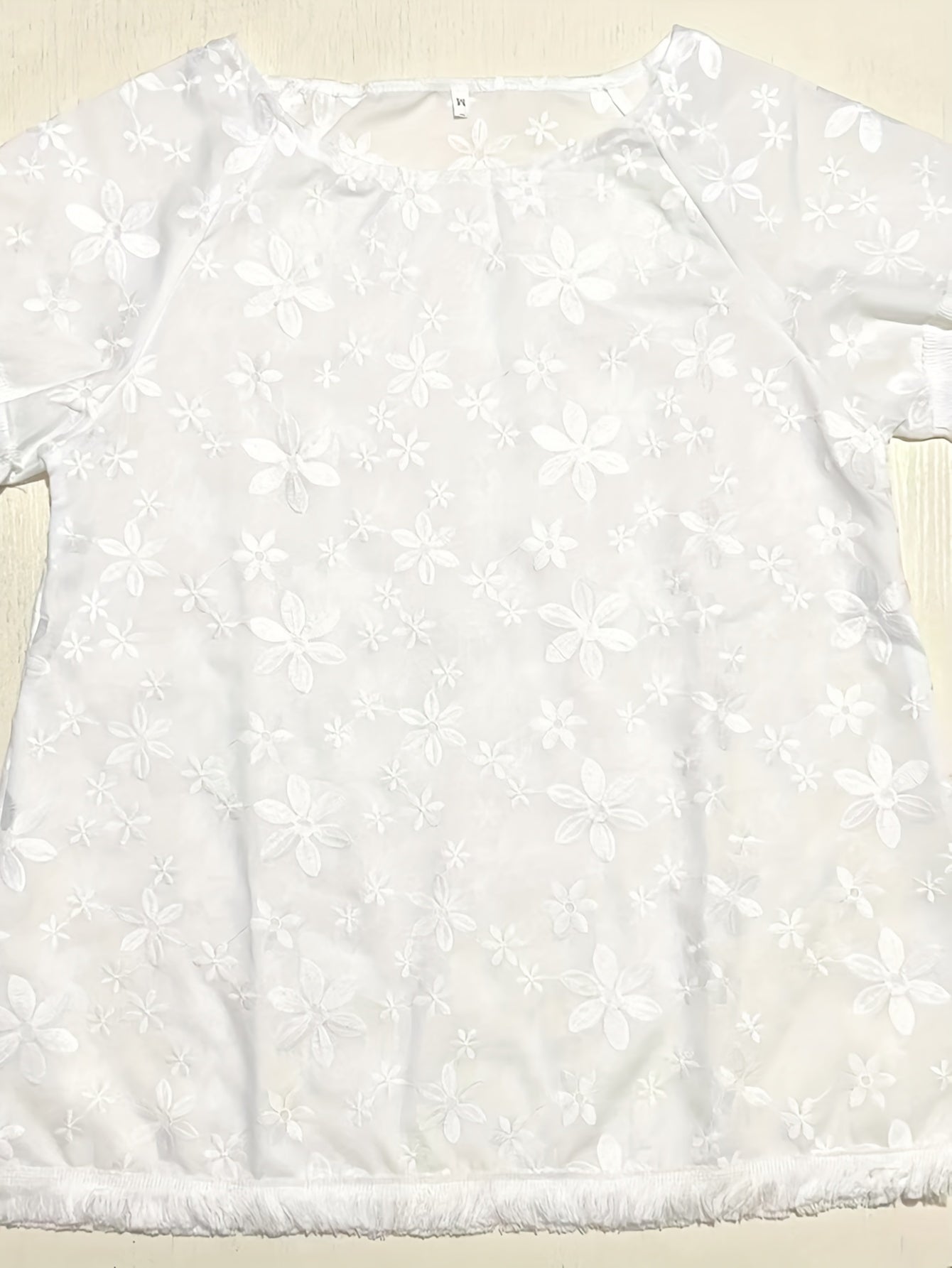 Women's Casual Short Sleeve Top with Raw Hem and Applique Detail - Comfortable and Stylish Solid Crew Neck Shirt