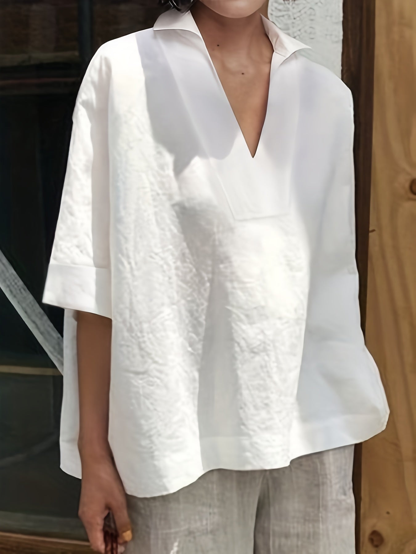 Women's Casual Short Sleeve V-Neck Blouse - Loose and Comfortable Fit