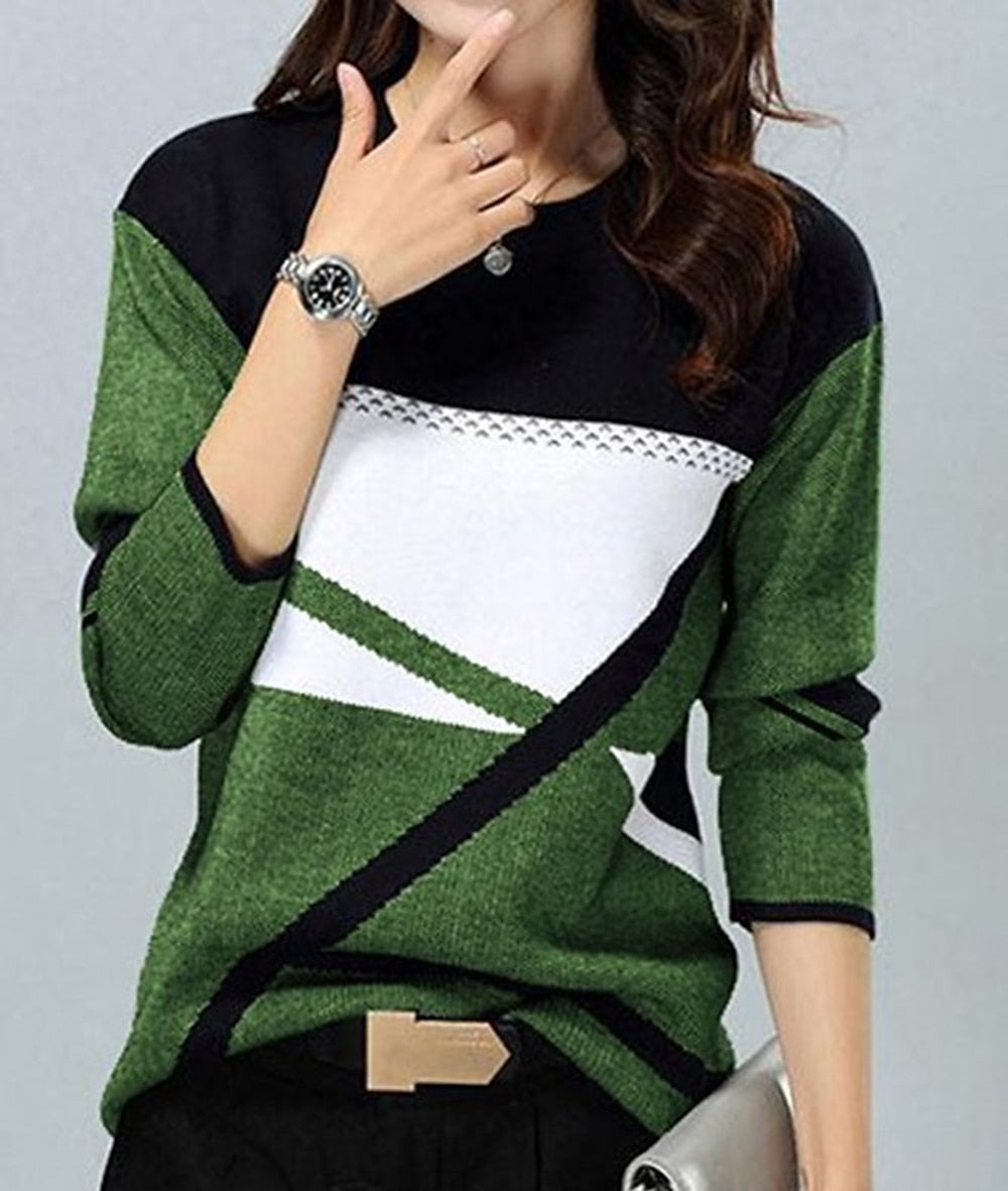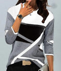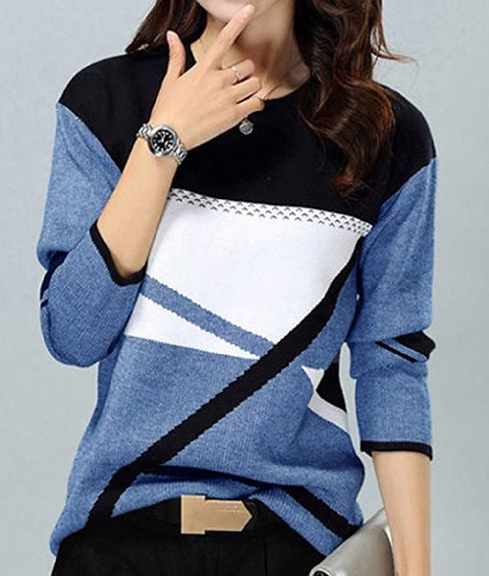 Sale Women's Color Block Print Long Sleeve Casual Weekend Basic Round Neck T-Shirt
