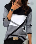Women's Color Block Print Long Sleeve Casual Weekend Basic Round Neck T-Shirt