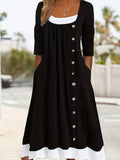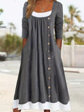 Women's Colorblock Button Decor Long Sleeve Round Neck Slight Stretch Dress With Pockets
