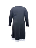 Sale Women's Colorblock Button Decor Long Sleeve Round Neck Slight Stretch Dress With Pockets