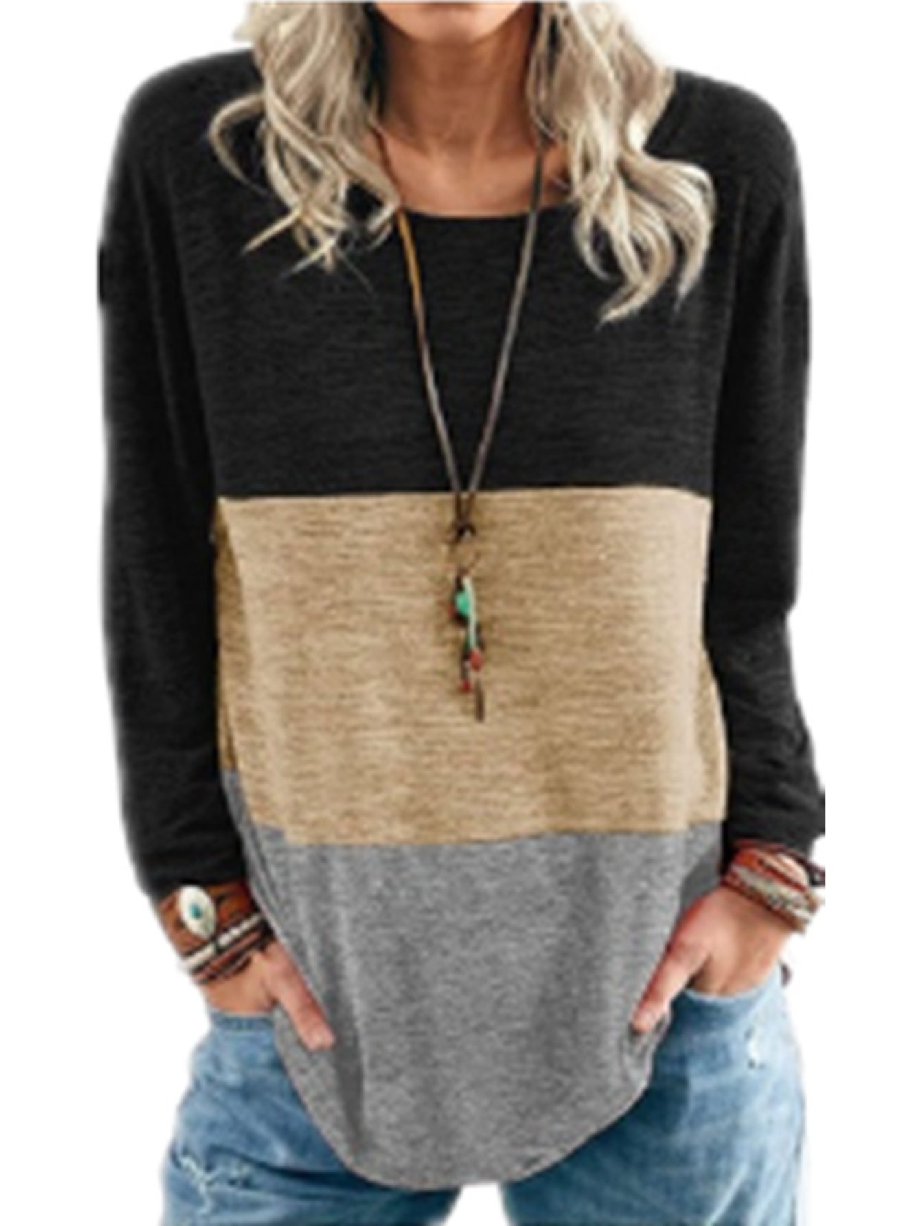Sale Women's Colorblock Long Sleeve Round Neck Medium Stretch Top