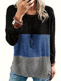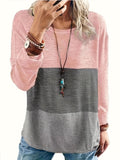 Women's Colorblock Long Sleeve Round Neck Medium Stretch Top