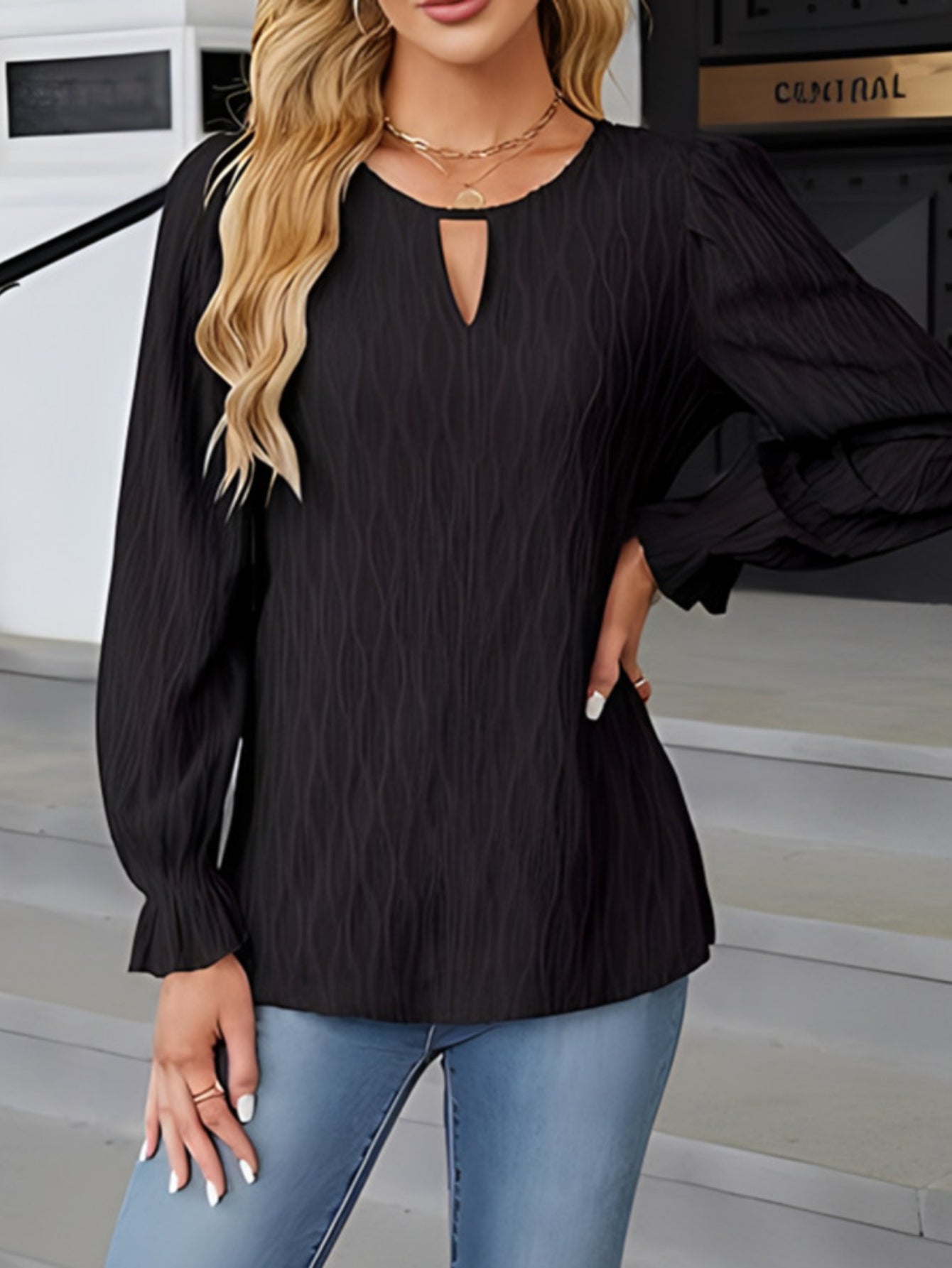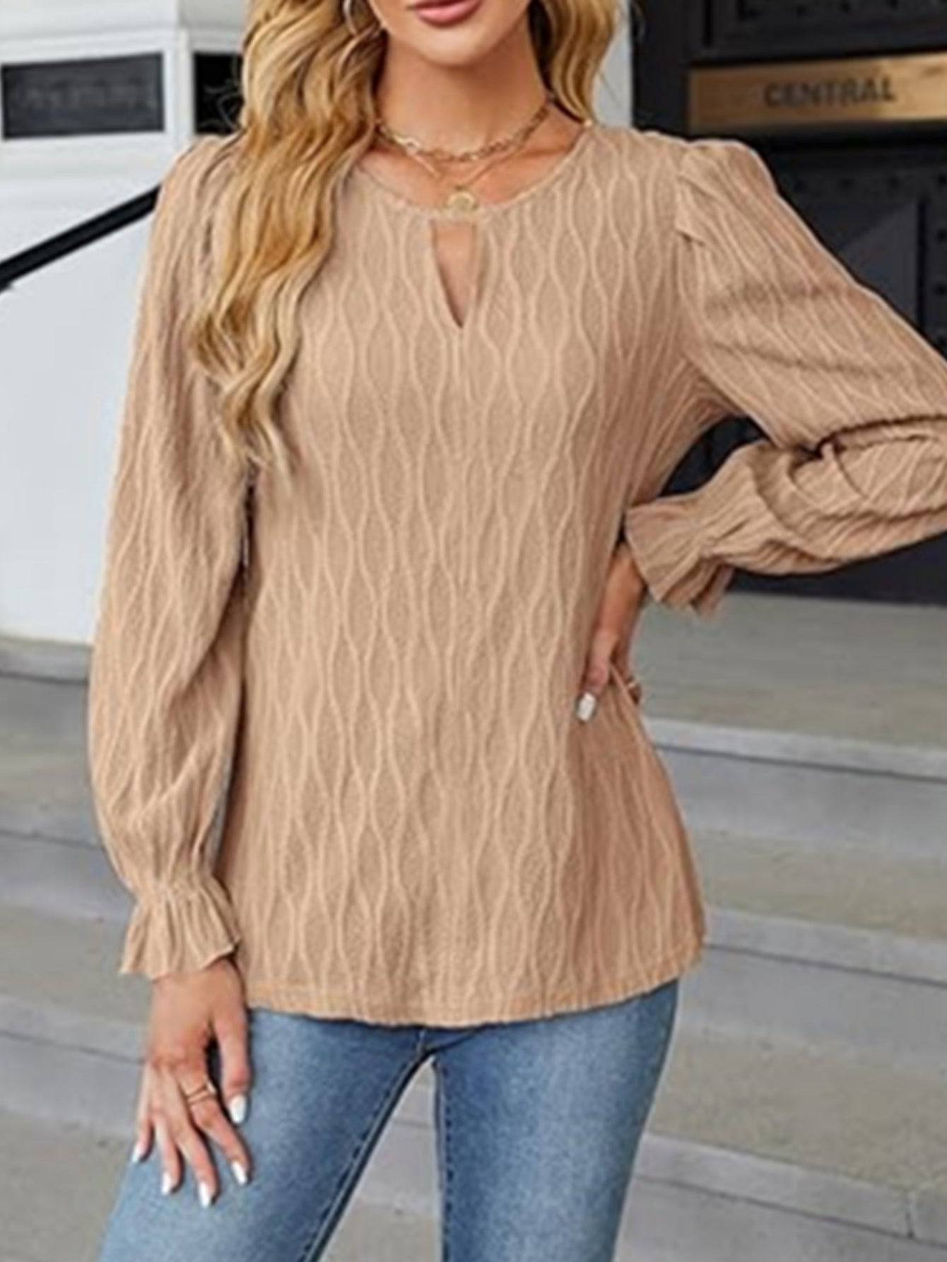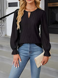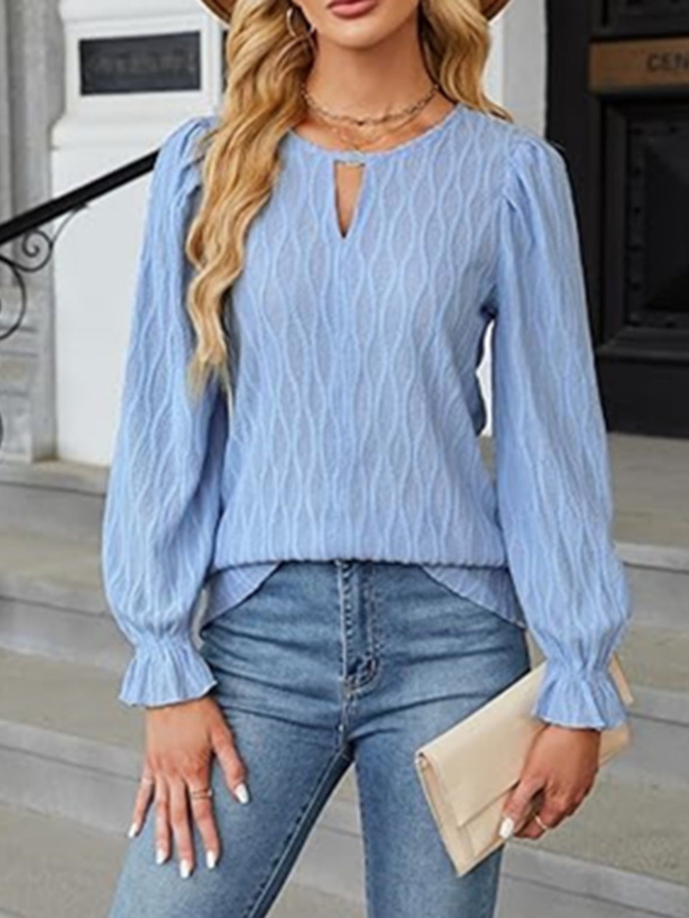 Women's Dressy Casual Long Puff Sleeve Textured Tops