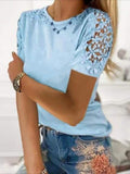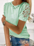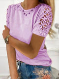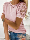 Women's Elegant Lace Crew Neck Short Sleeve T-Shirt