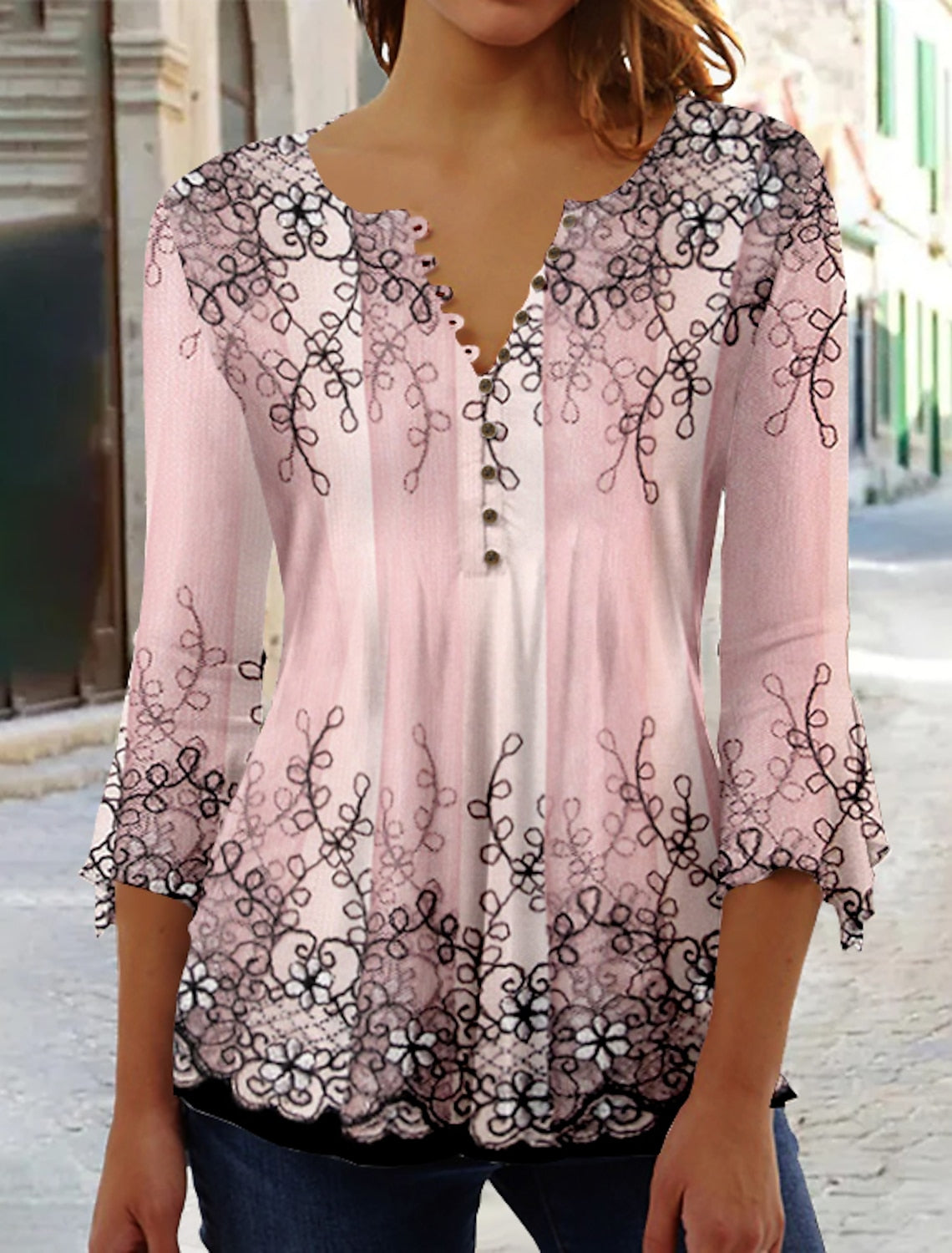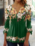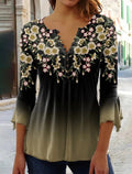 Women's Floral Button Print 3/4 Length Sleeve Casual Shirt
