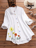 Sale Women's Floral Print Long Sleeve Colorful Button Turn Down Collar Shirt