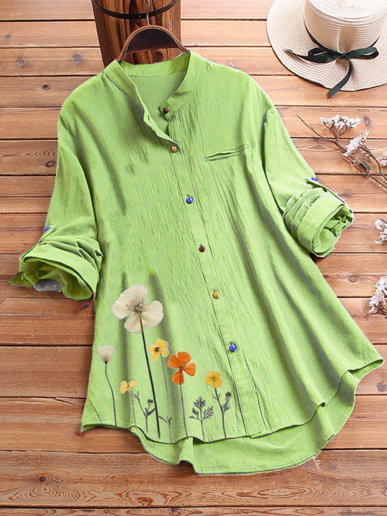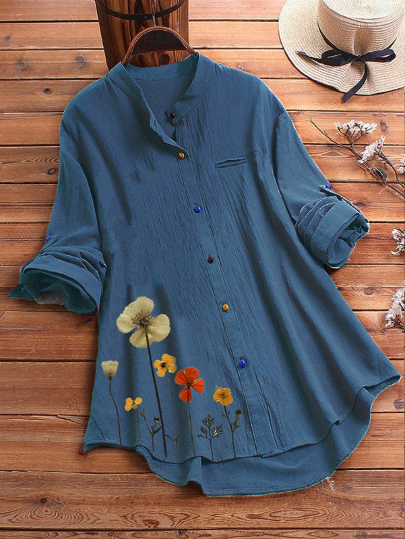 Women's Floral Print Long Sleeve Colorful Button Turn Down Collar Shirt