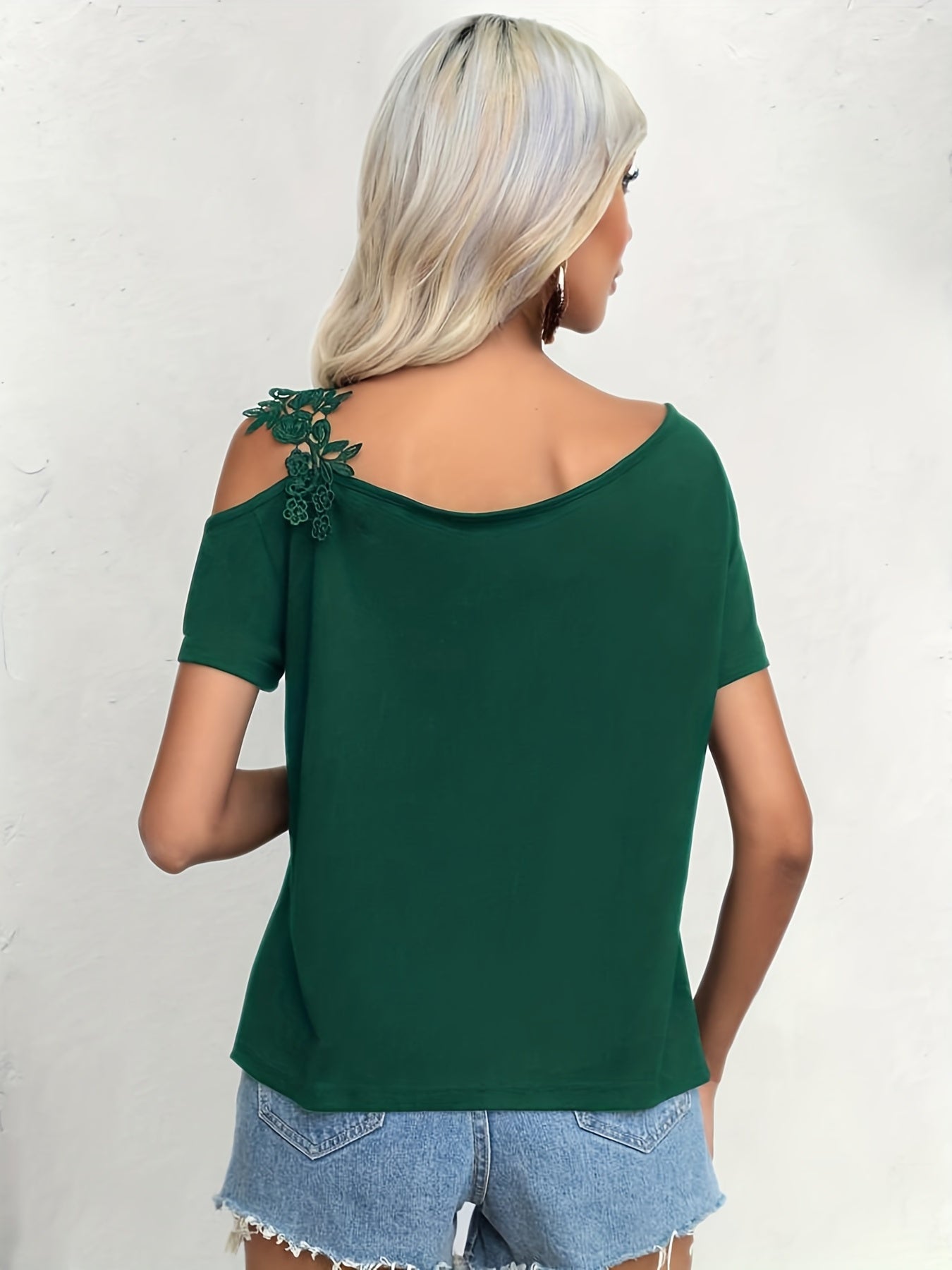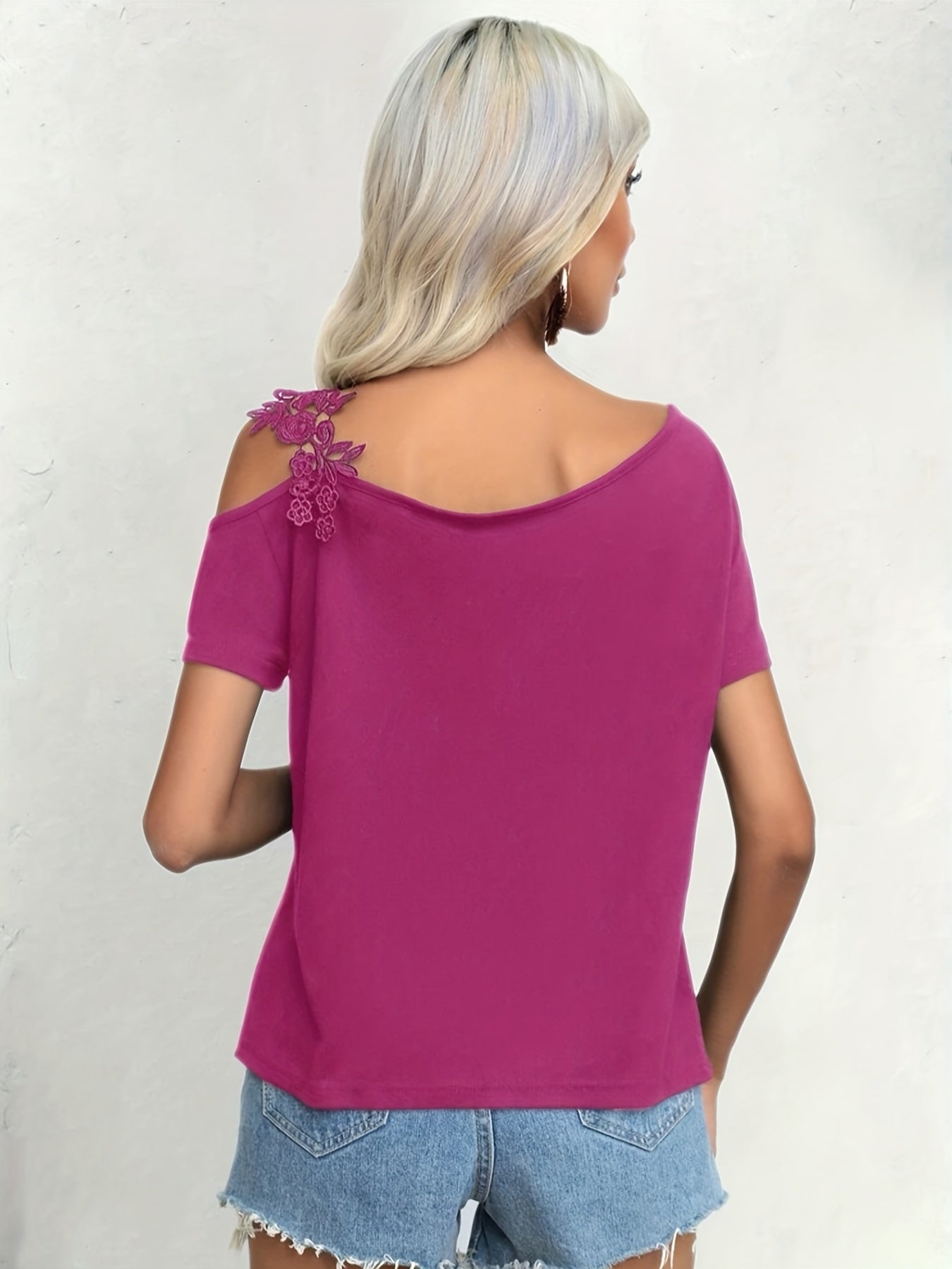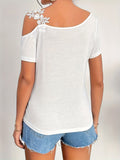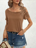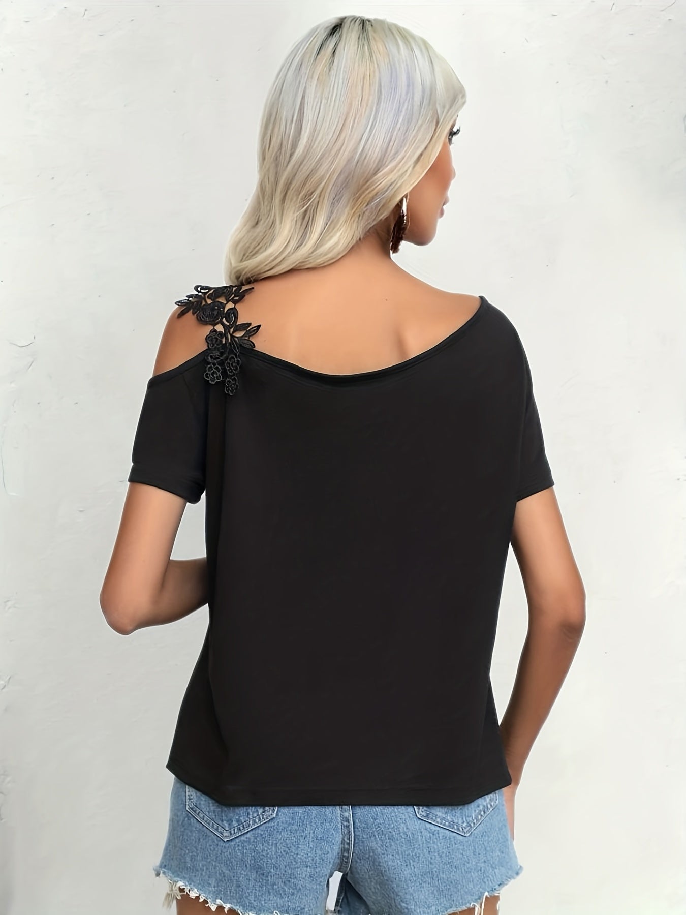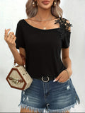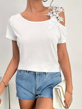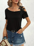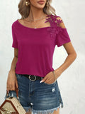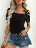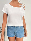 Women's Guipure Lace Asymmetrical Neck Short Sleeve T-Shirt