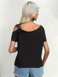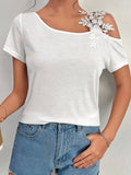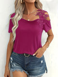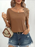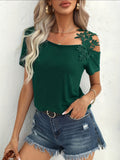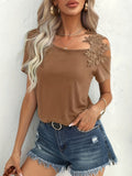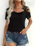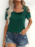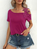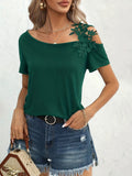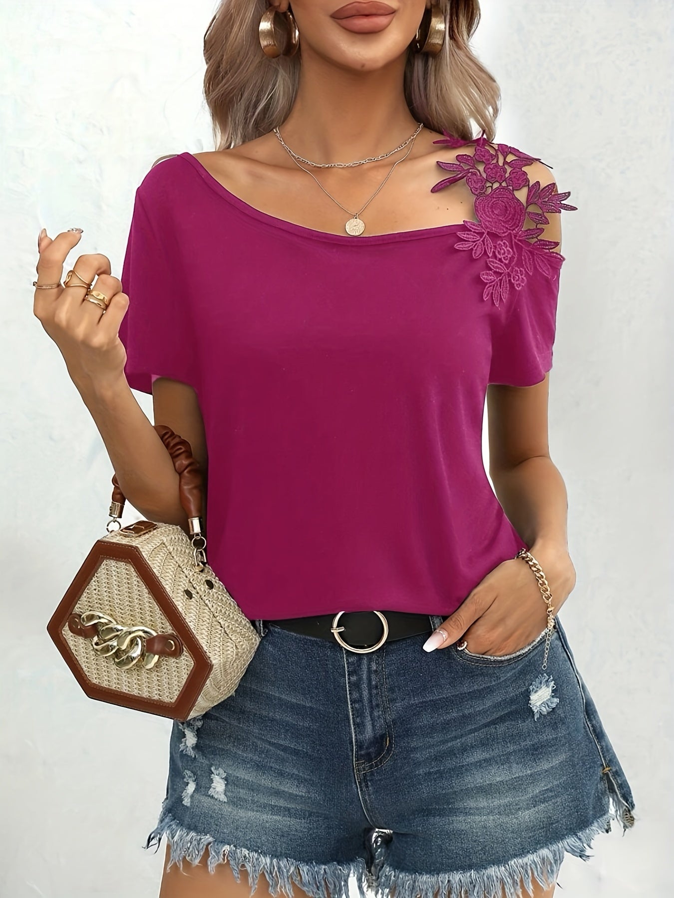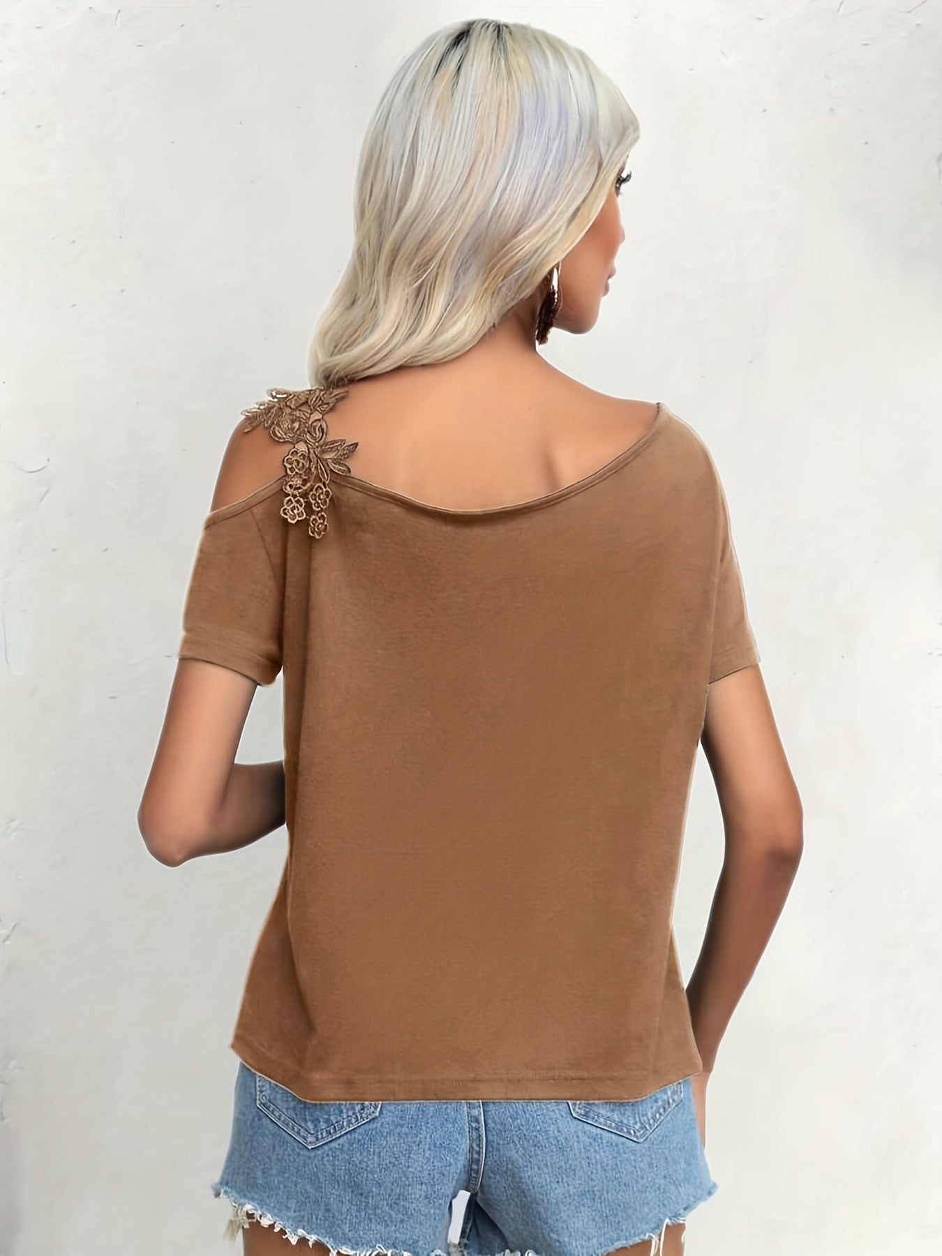 Women's Guipure Lace Asymmetrical Neck Short Sleeve T-Shirt