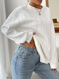 Women's Cable Crew Neck Sweatshirt - Comfortable and Stylish Casual Top