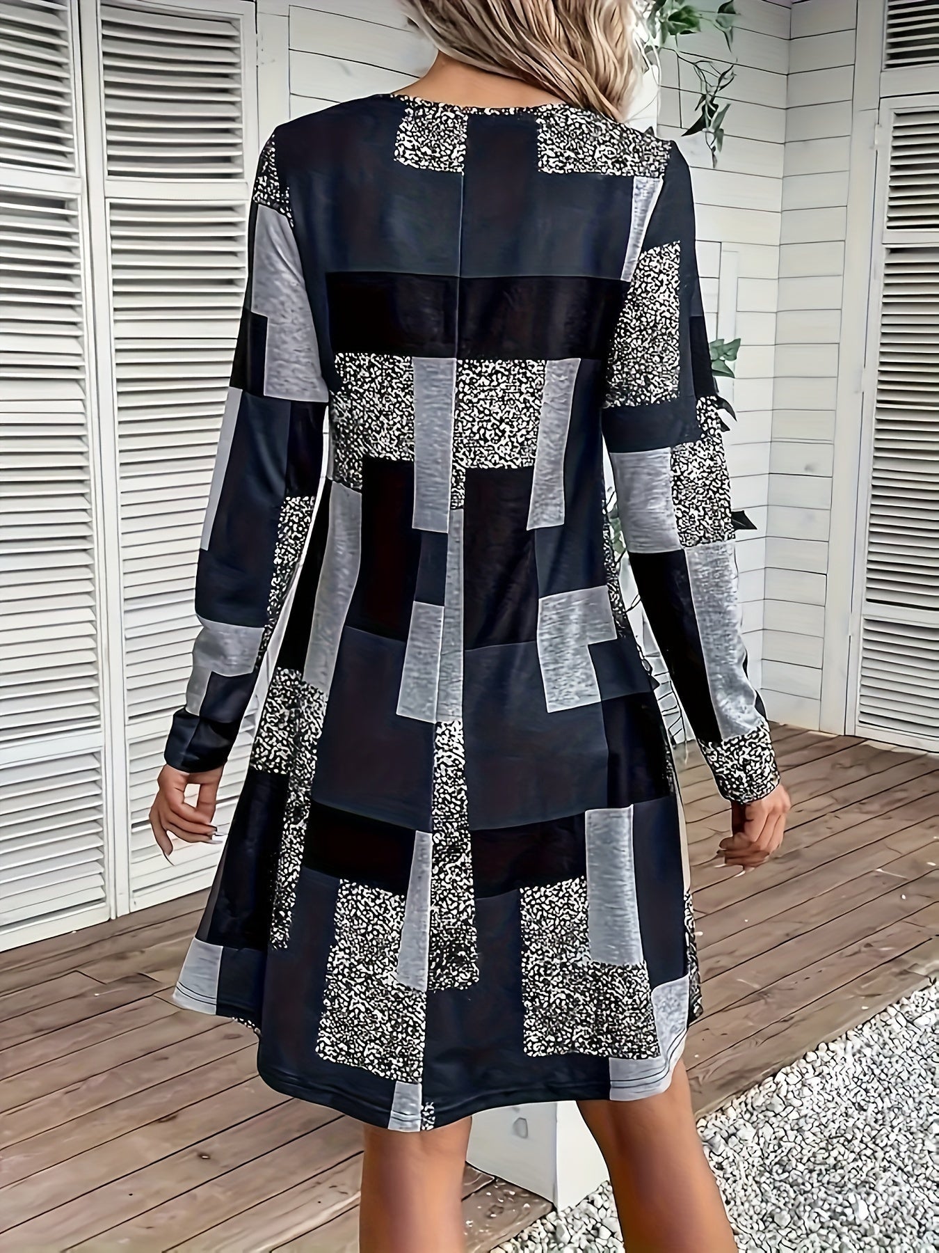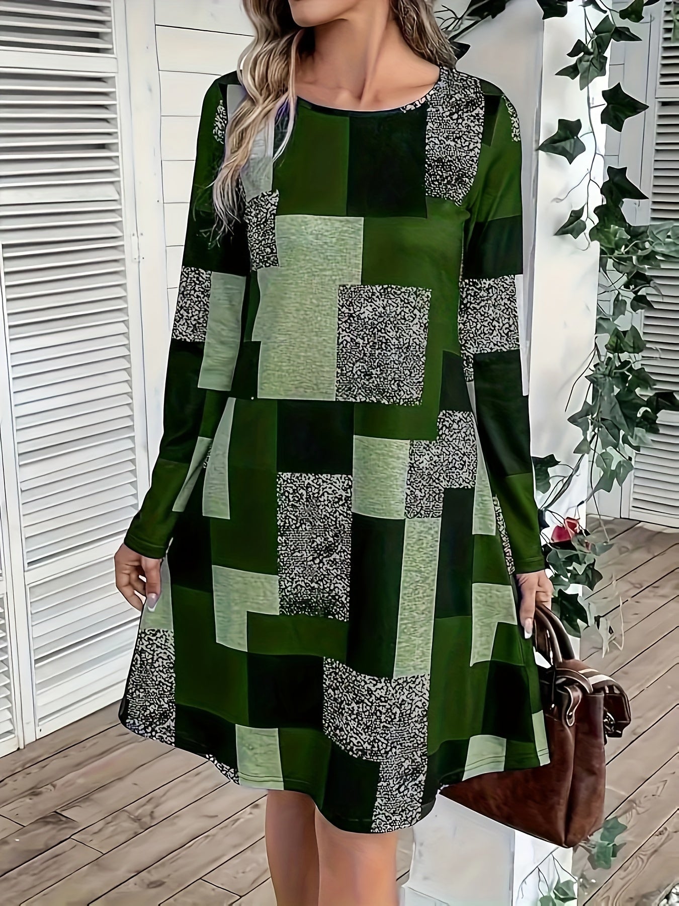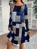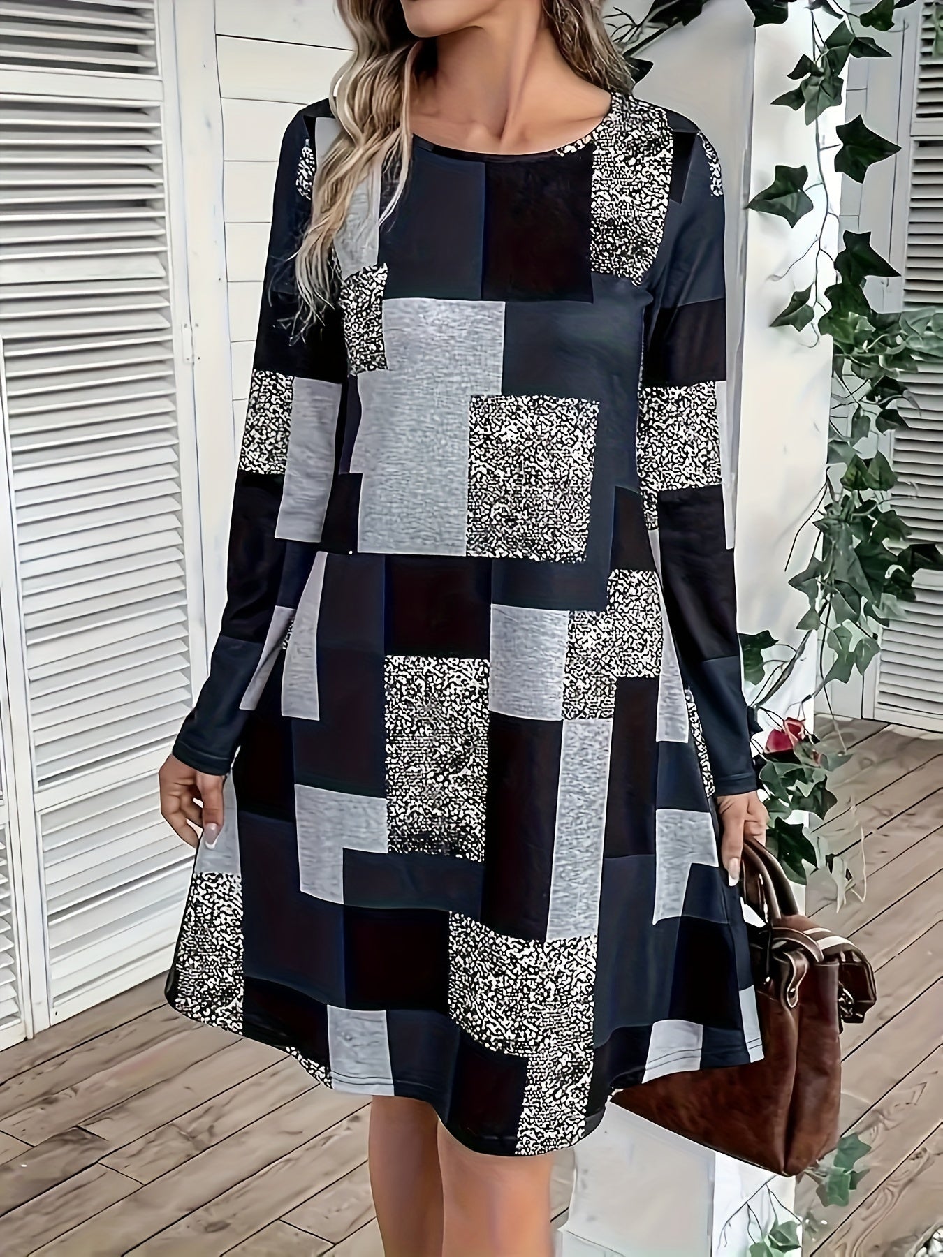 Women's Casual Crew Neck Long Sleeve Geometric Print Dress