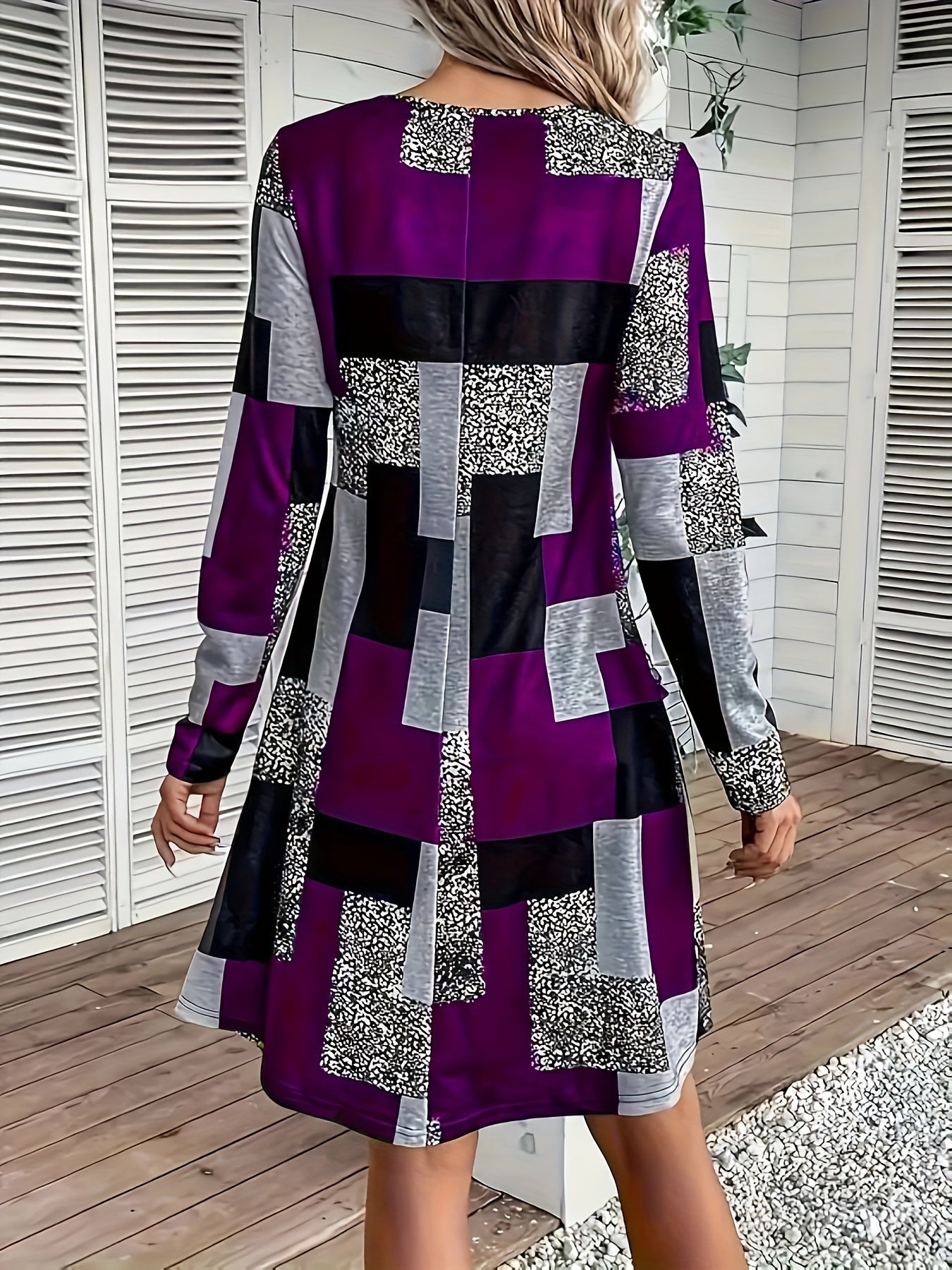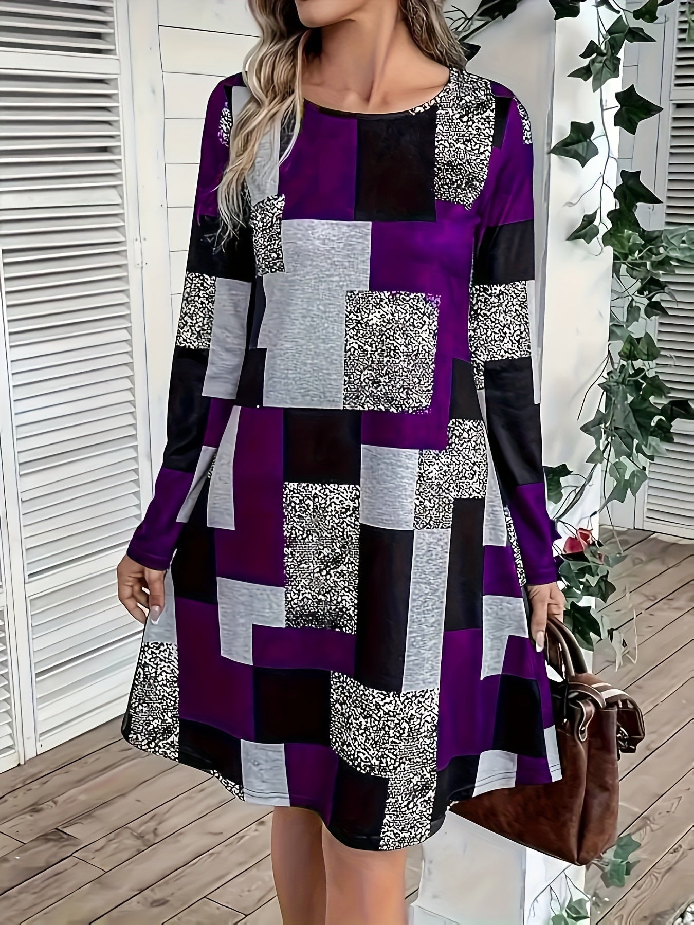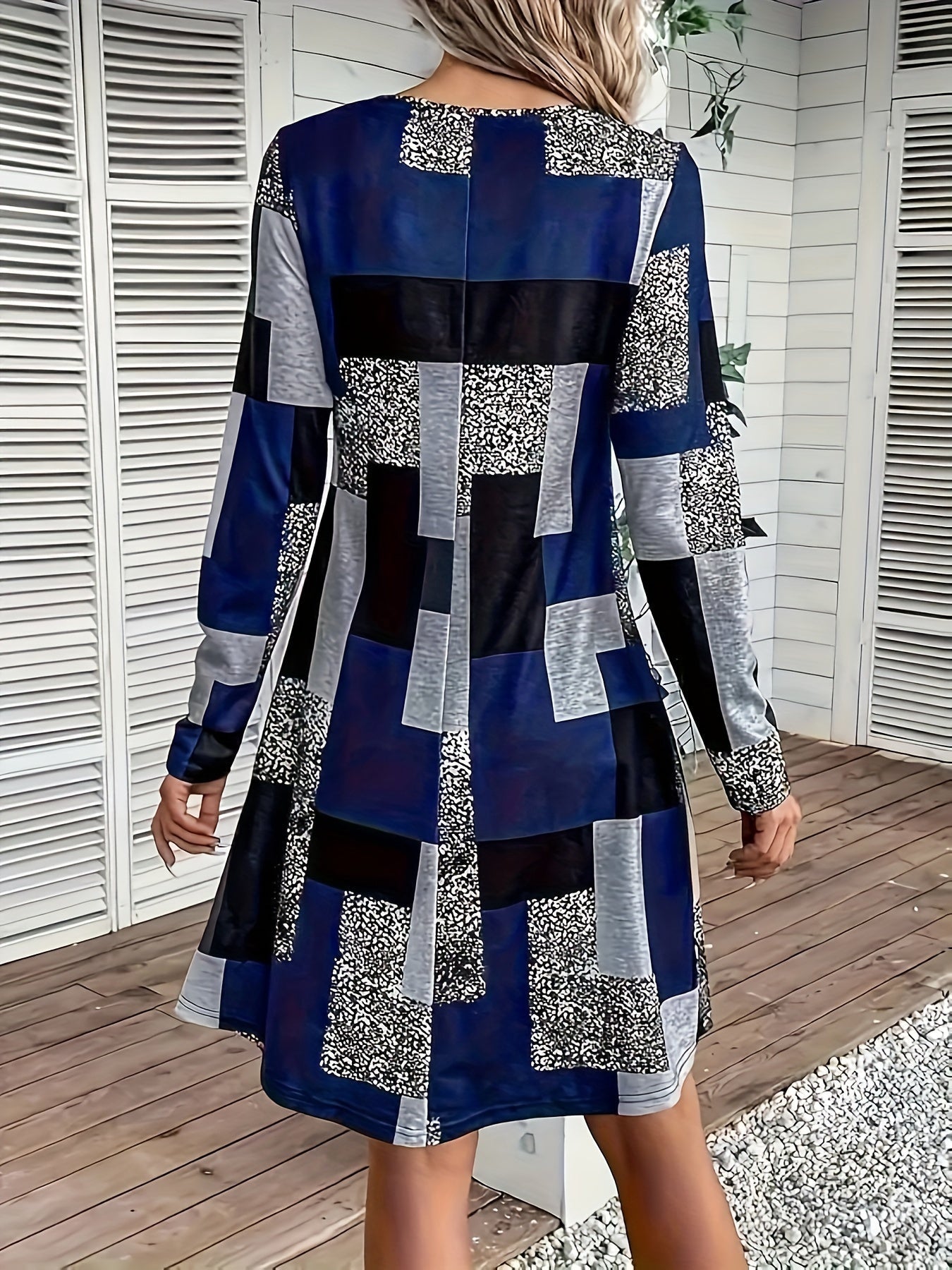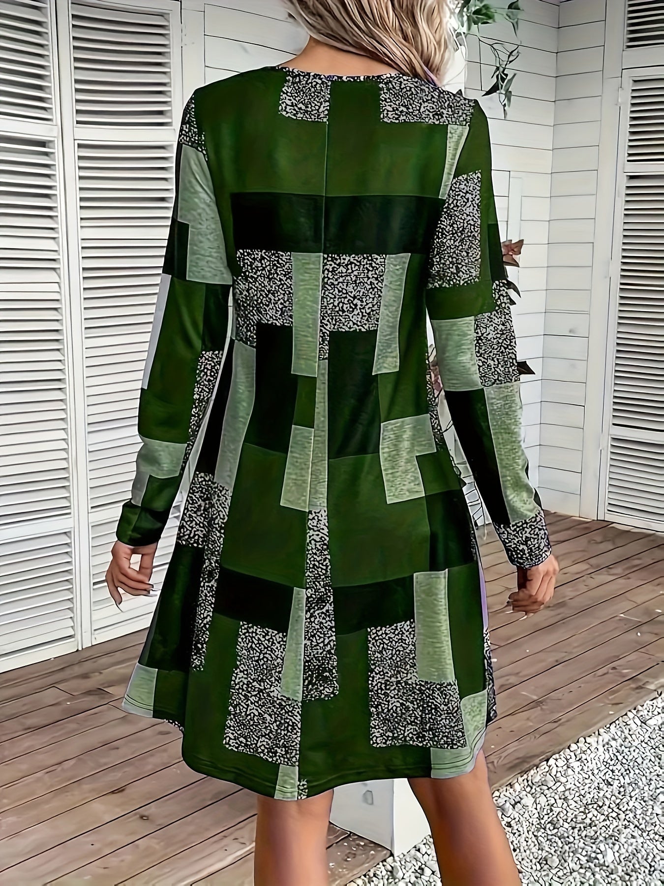 Women's Casual Crew Neck Long Sleeve Geometric Print Dress