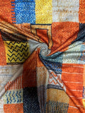 Colorblock Geometric Print T-shirt with Medium Stretch and Flattering V-Neck
