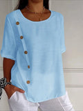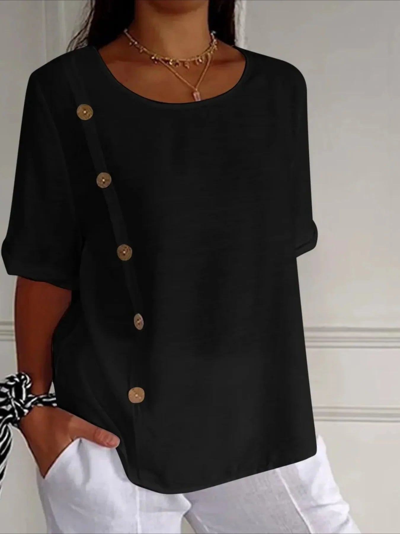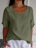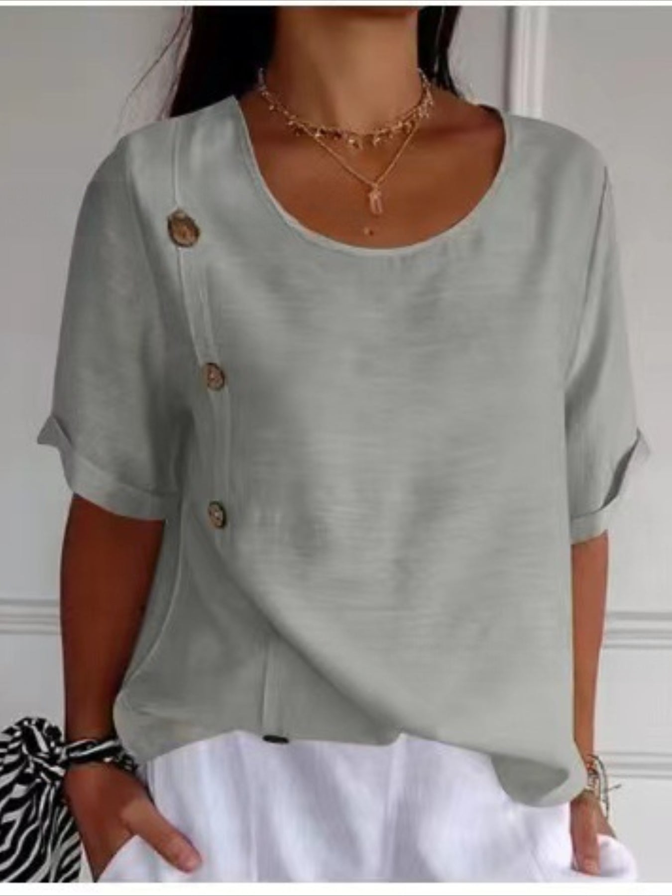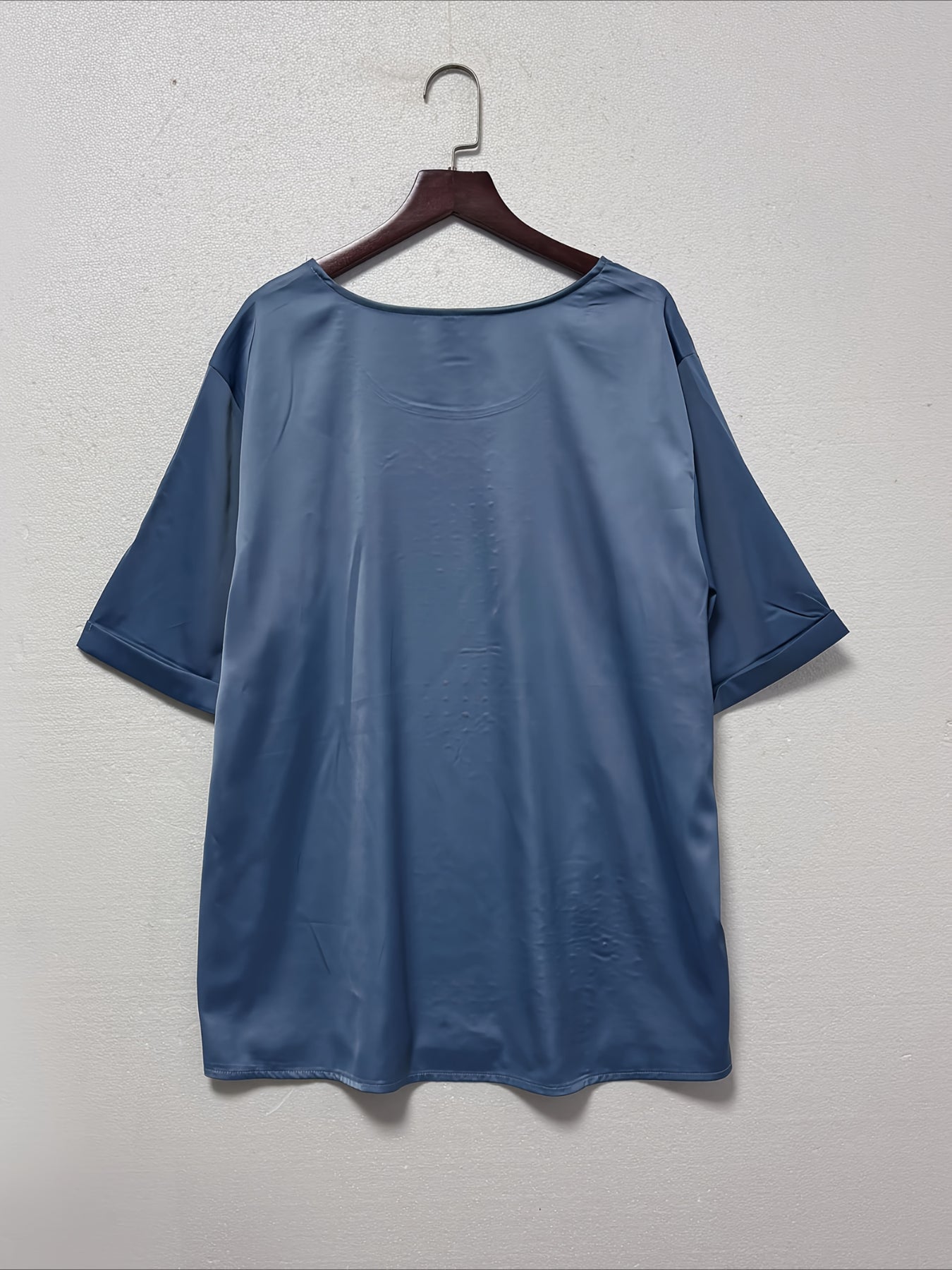 Elegant Solid Color Casual Loose Fit Crew Neck Shirt