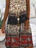 Women's Sleeveless Color Block Cold Shoulder V Neck Midi Dress