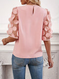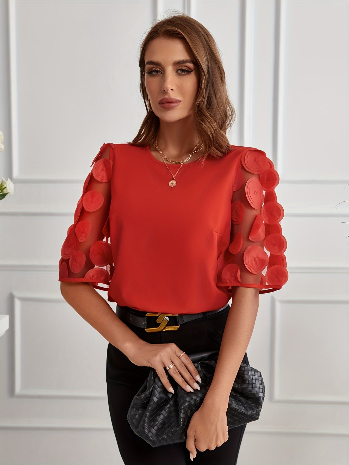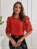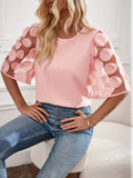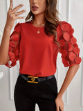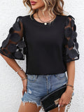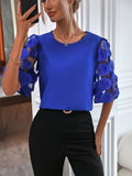 Sale Women's Solid Applique Blouse with Half Sleeves and Mesh Splicing