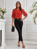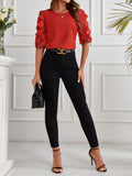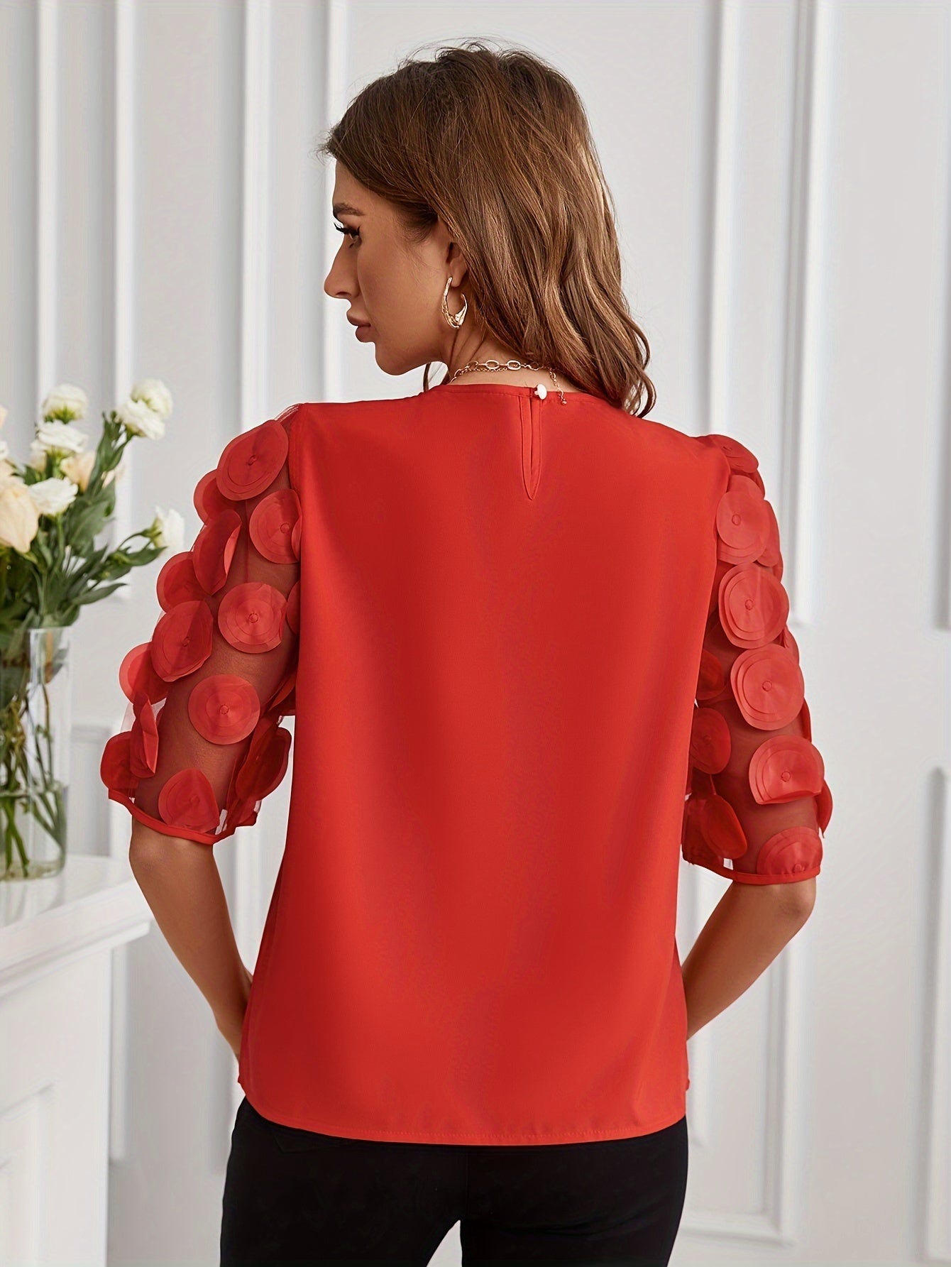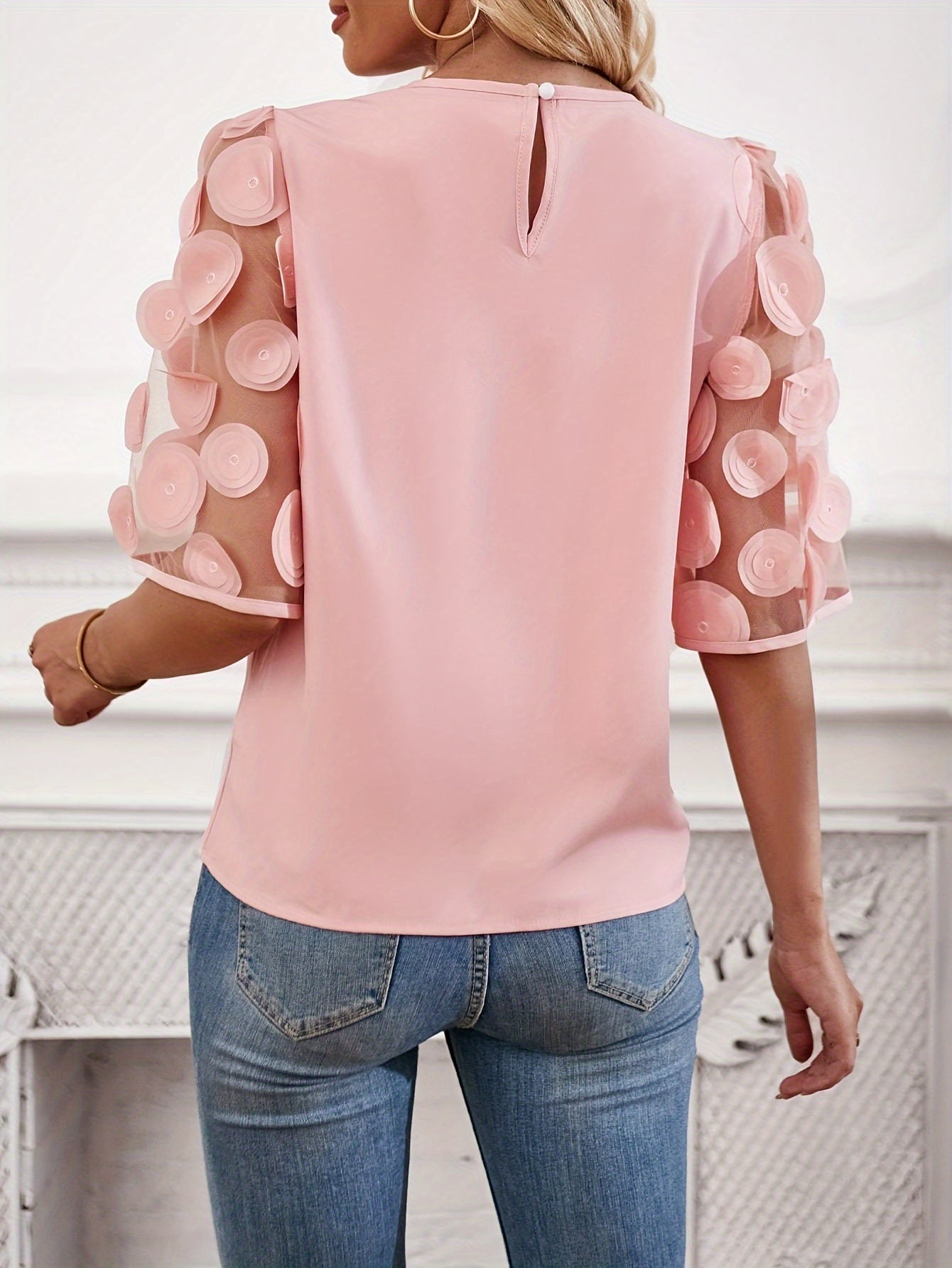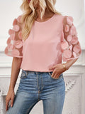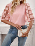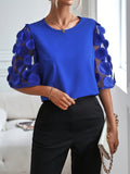 Women's Solid Applique Blouse with Half Sleeves and Mesh Splicing