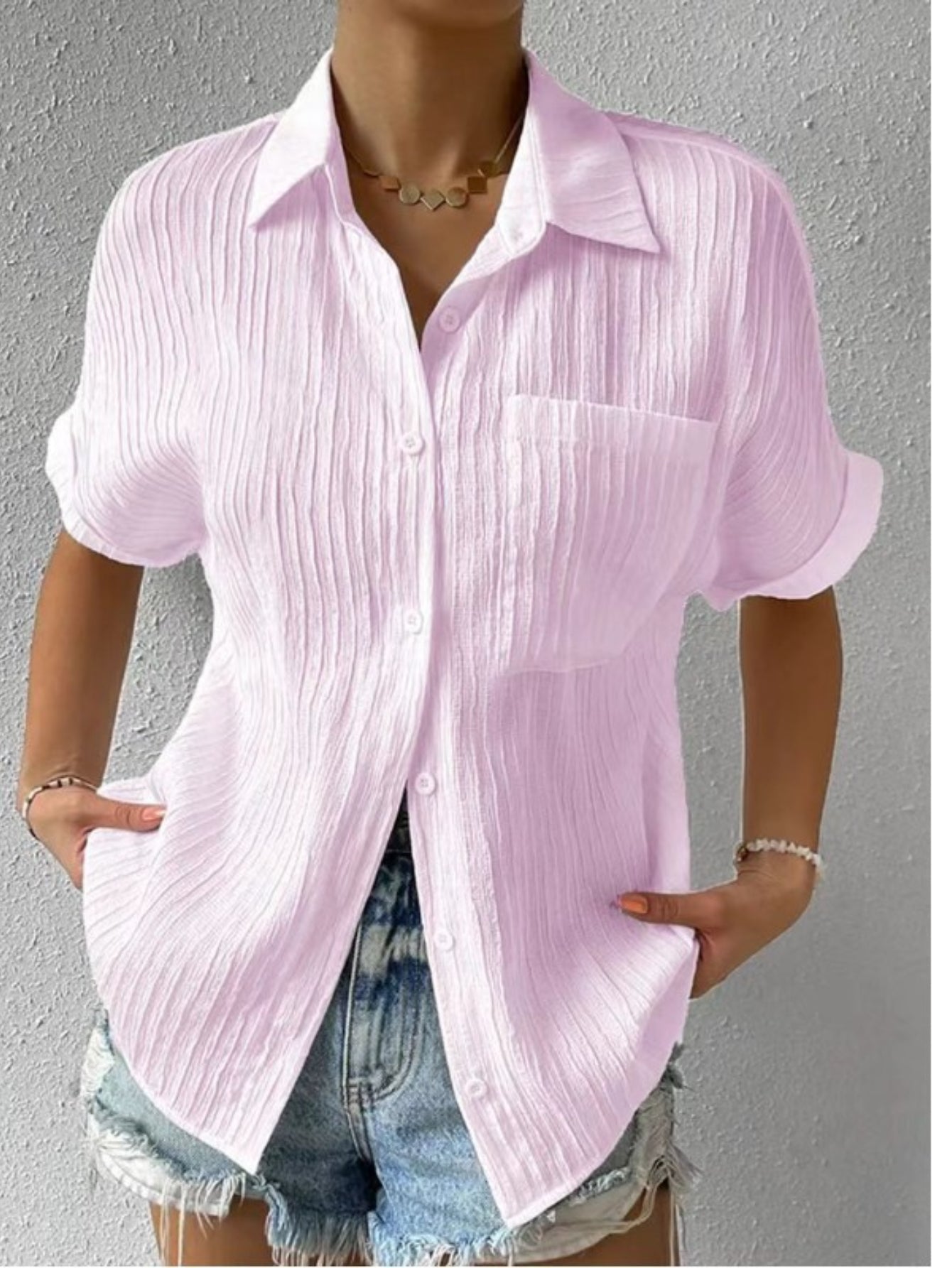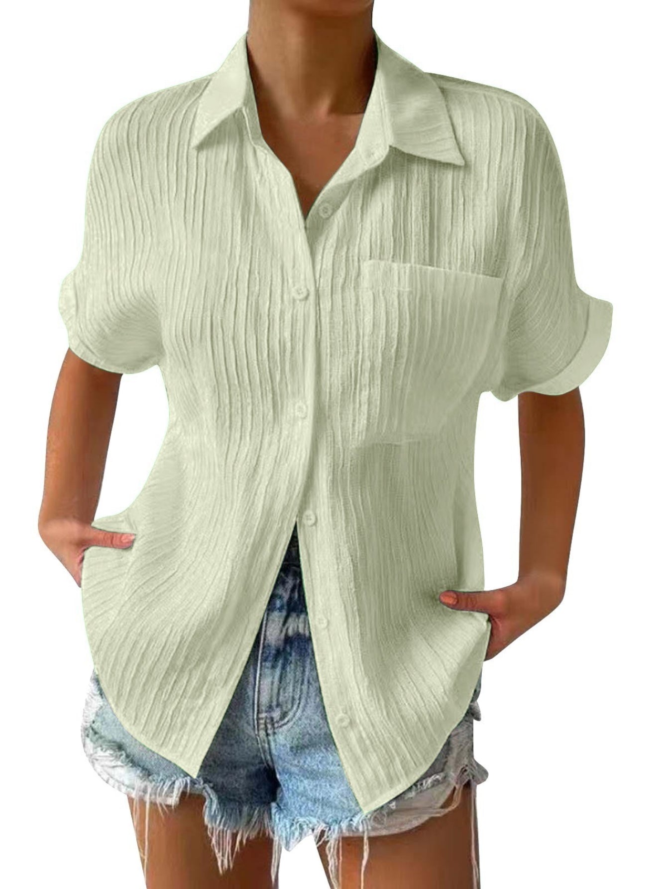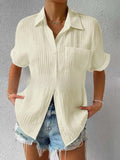 Women's Solid Button Front Casual Lapel Short Sleeve Everyday Shirt