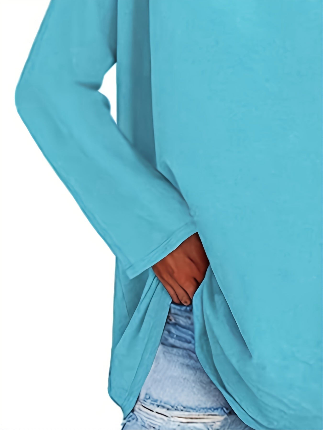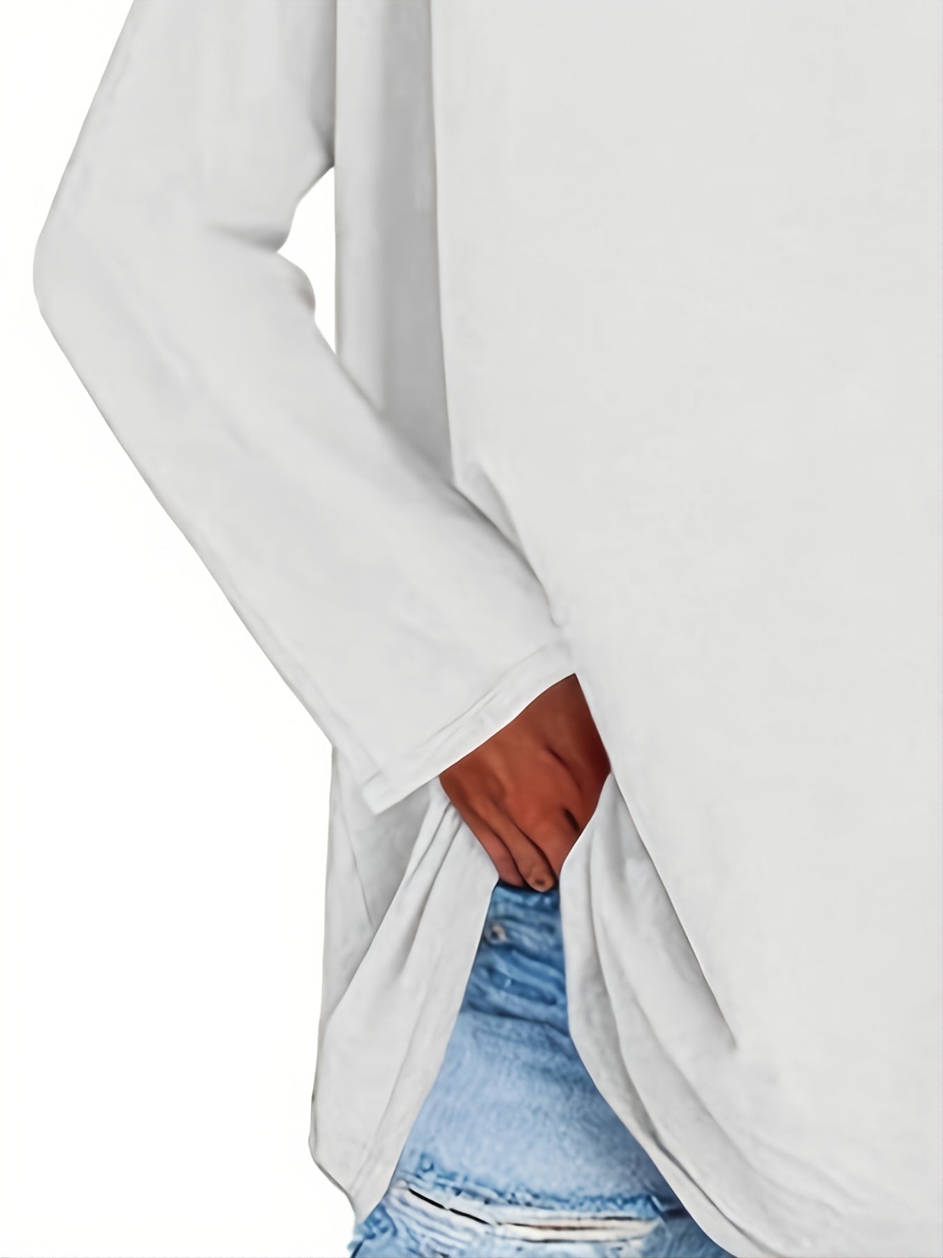 Women's Solid Color Oversized Tops, V-Neck Long Sleeve T-Shirts, Casual Loose Shirts