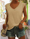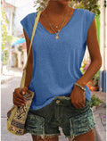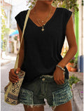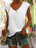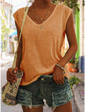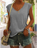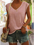 Women's Solid Color V Neck Sleeveless T-Shirt