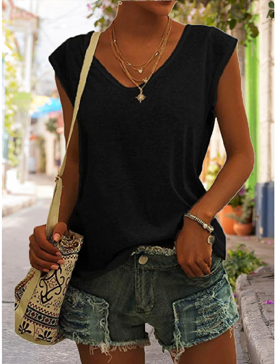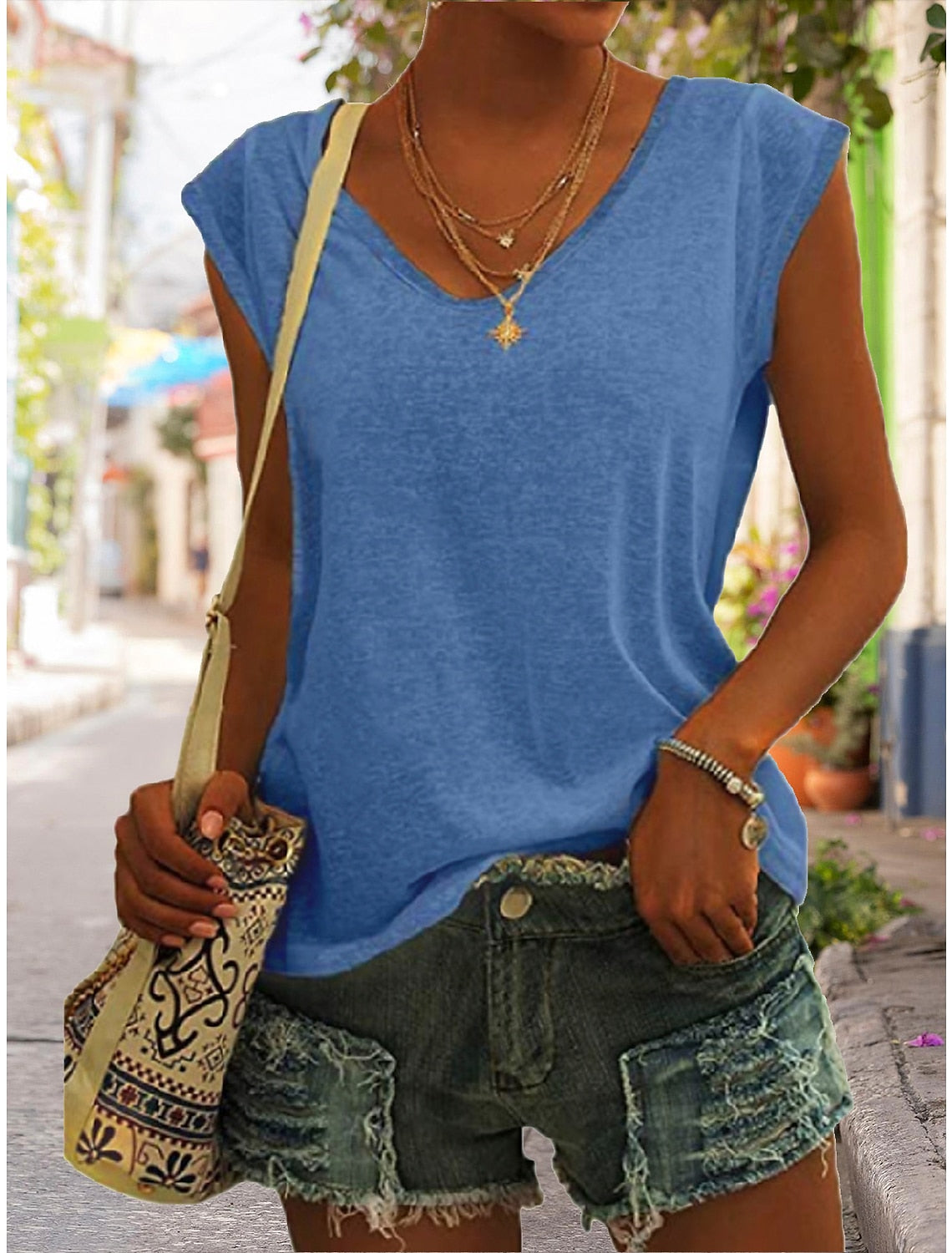 Sale Women's Solid Color V Neck Sleeveless T-Shirt