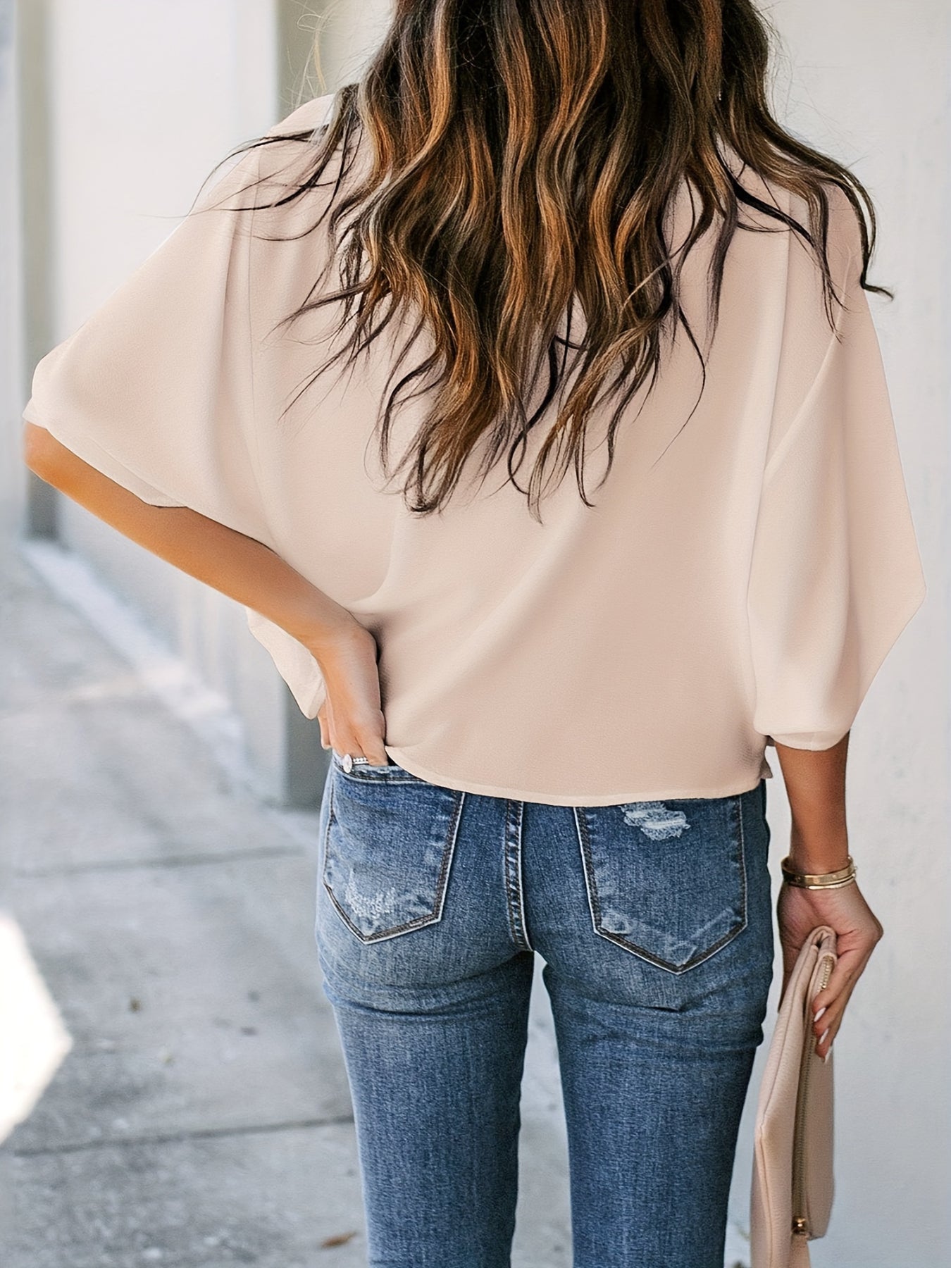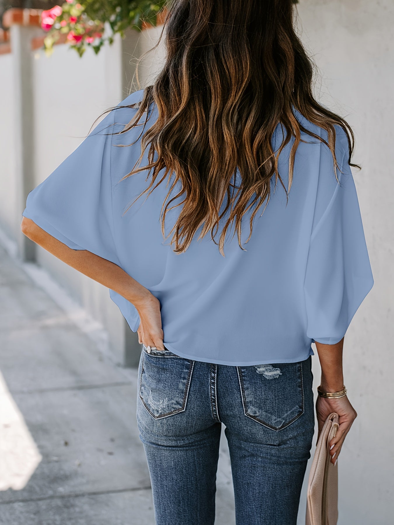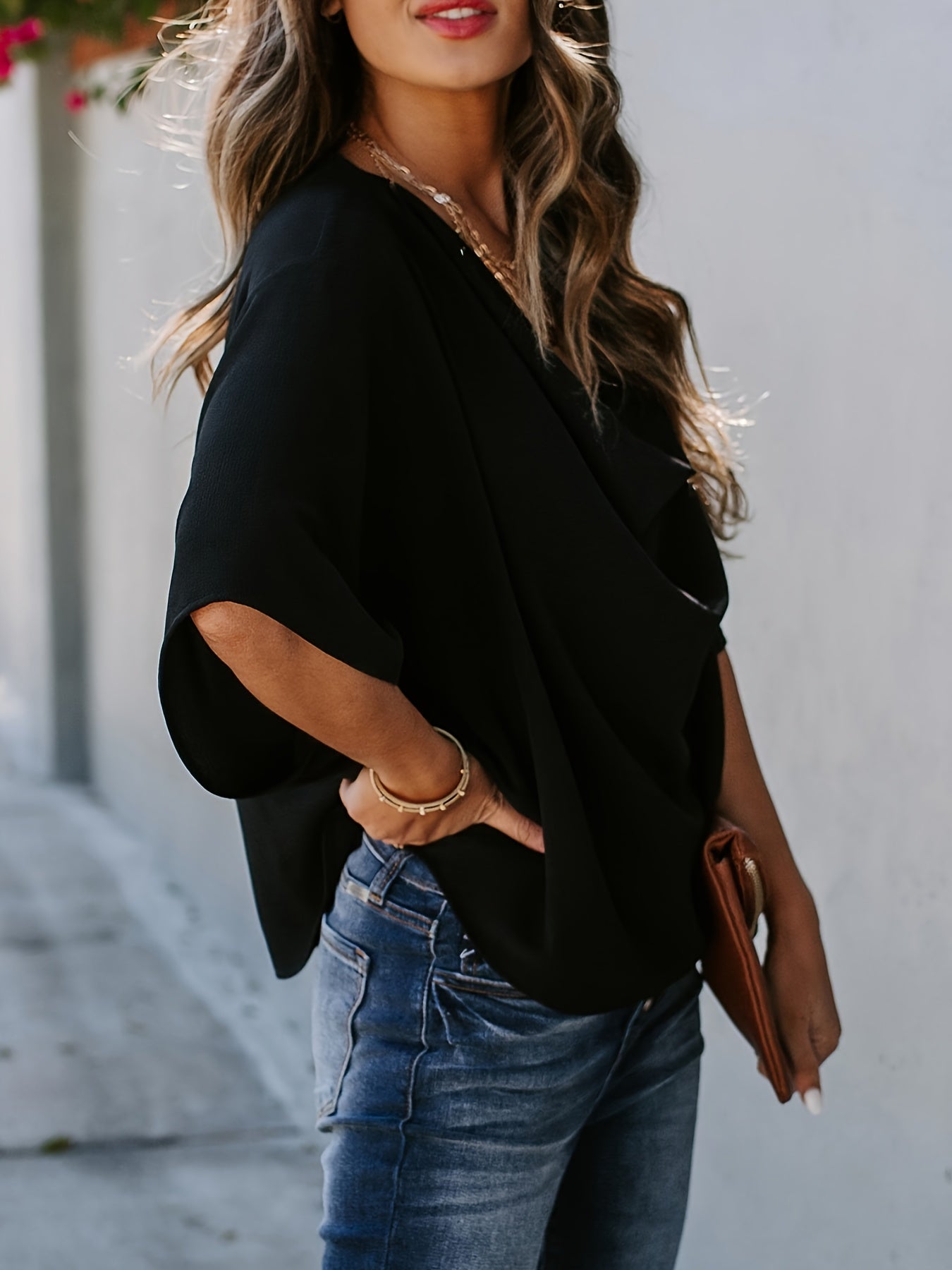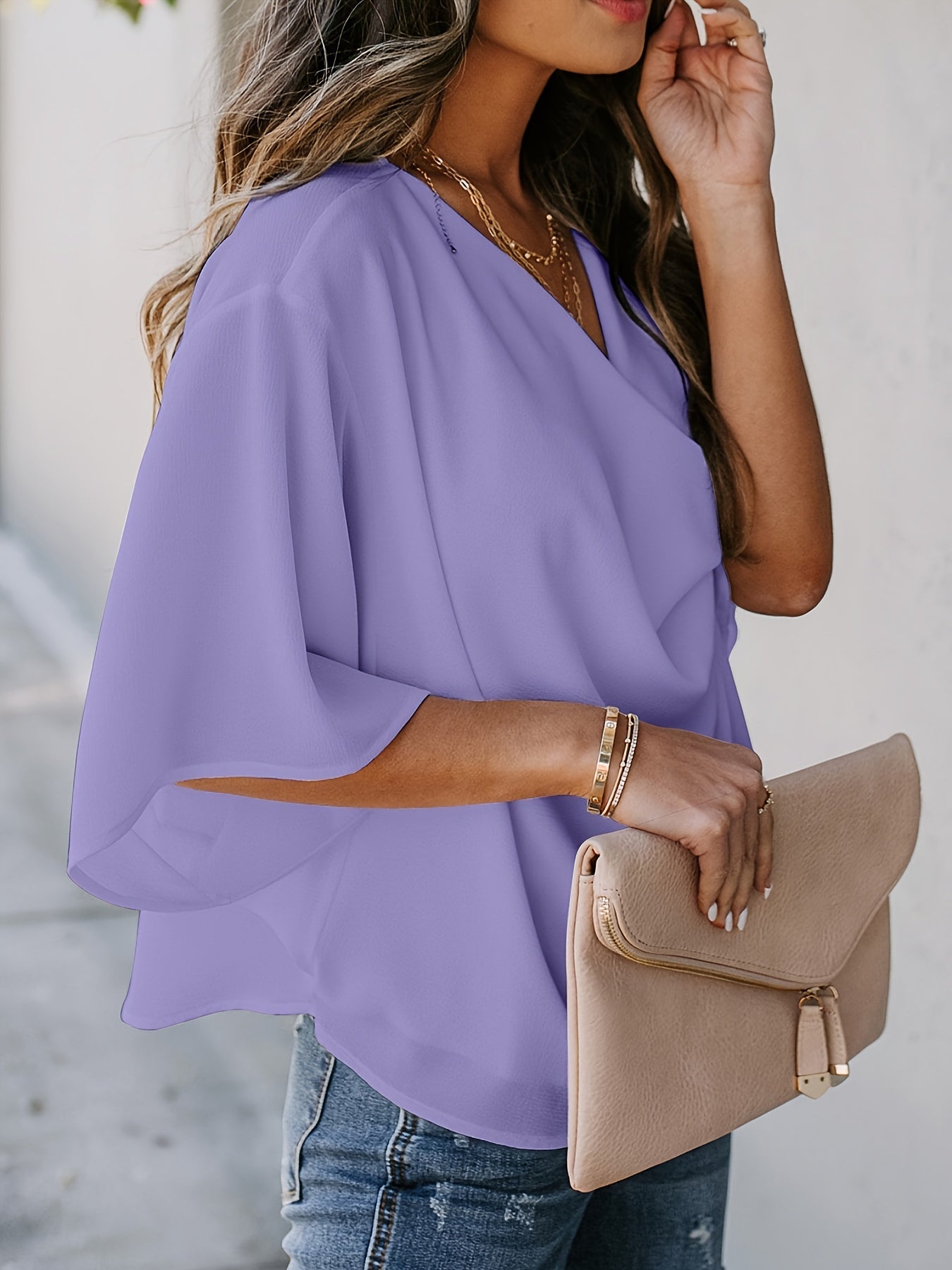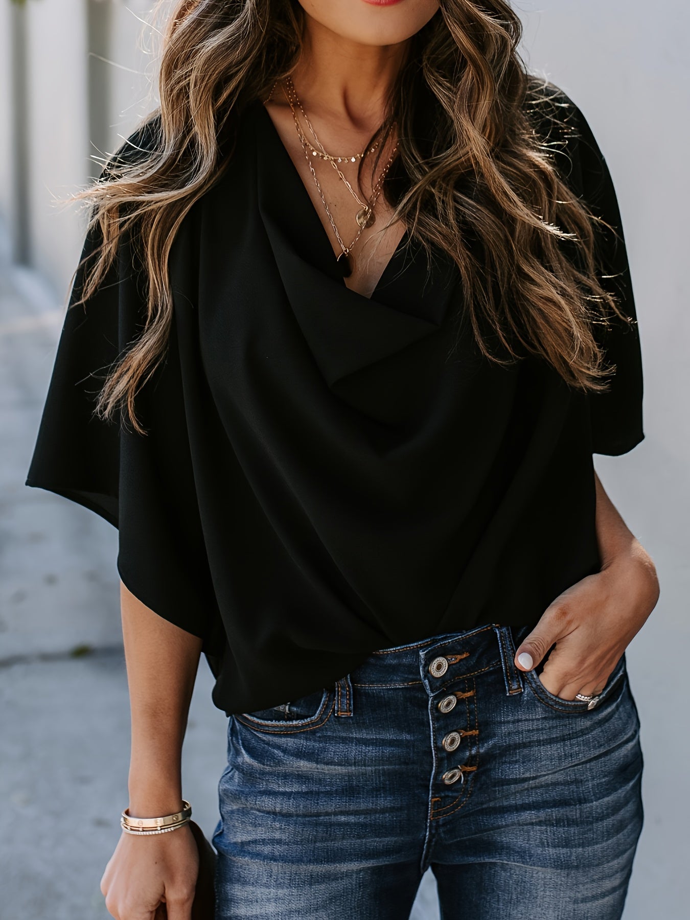 Women's Solid Cowl Neck Batwing Sleeve Blouse - Casual and Comfortable Fashion Top