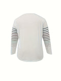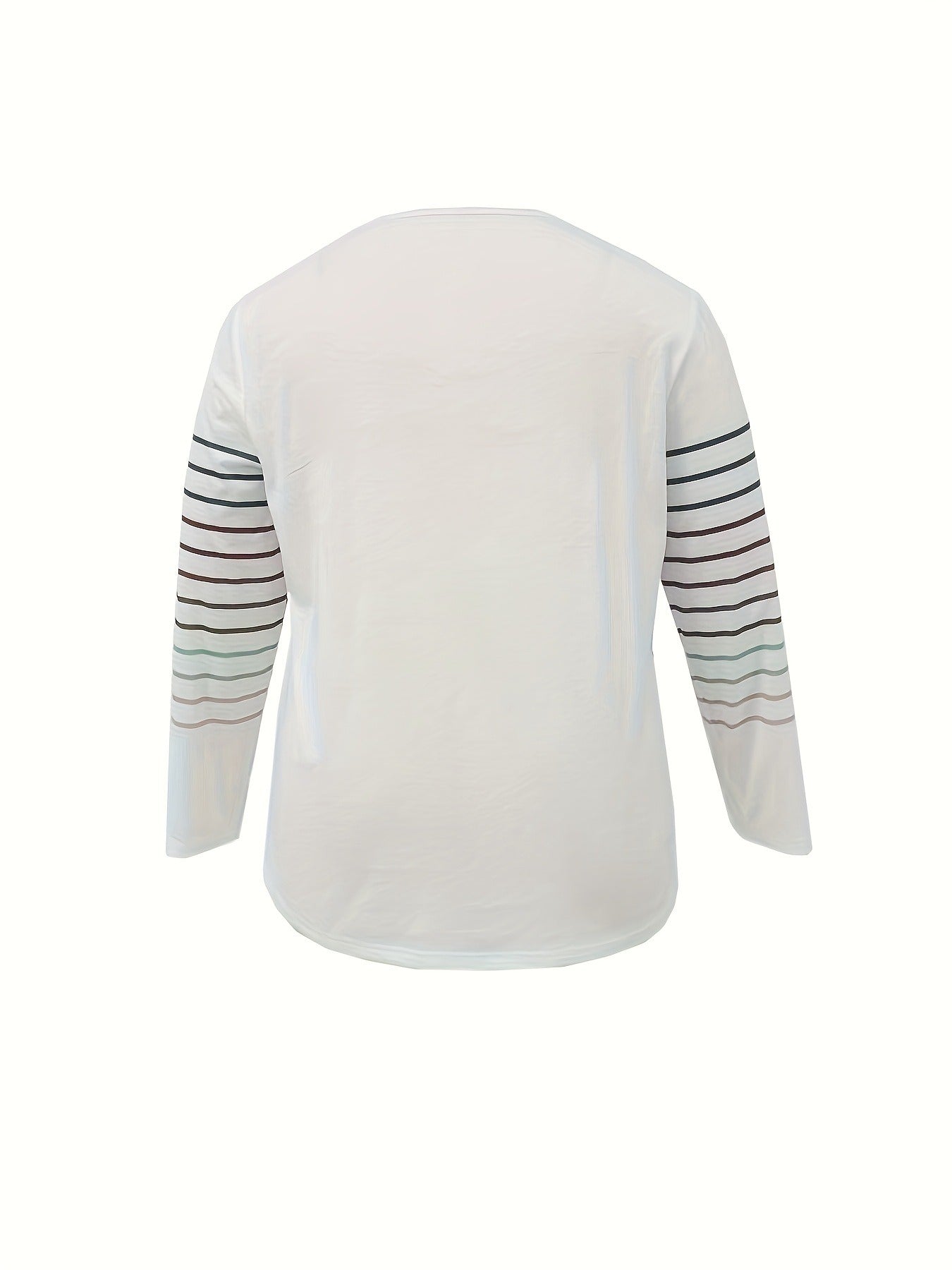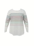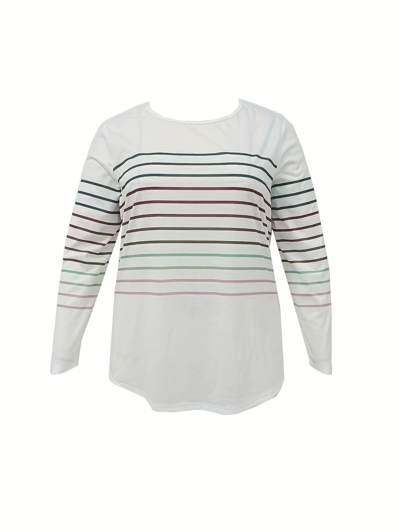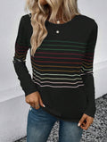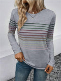 Women's Stripe Print Long Sleeve Round Neck Slight Stretch T-shirt