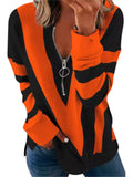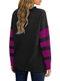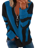 Women's T-shirt Colorblock Long Sleeves Zipper Loose T-Shirt