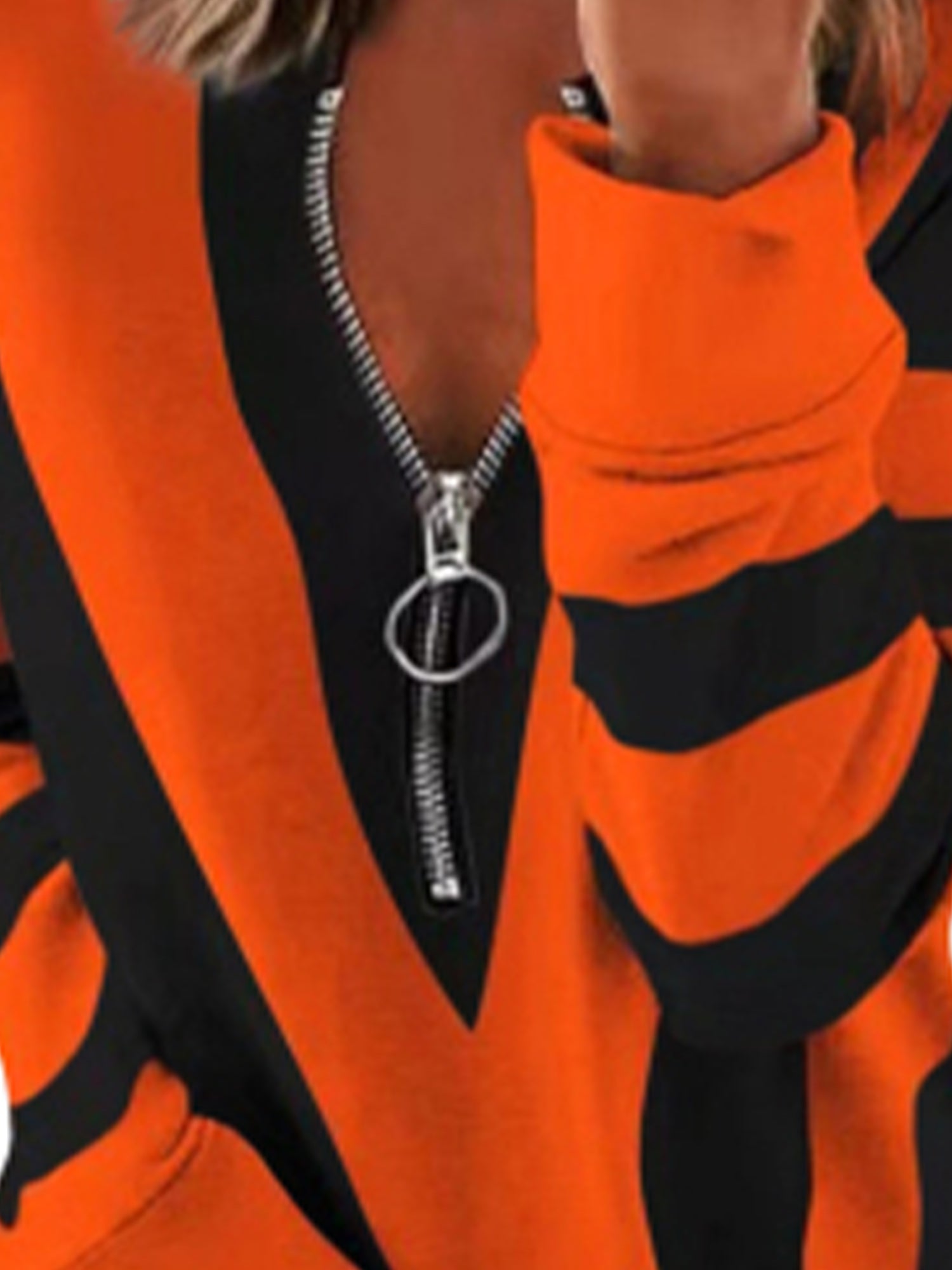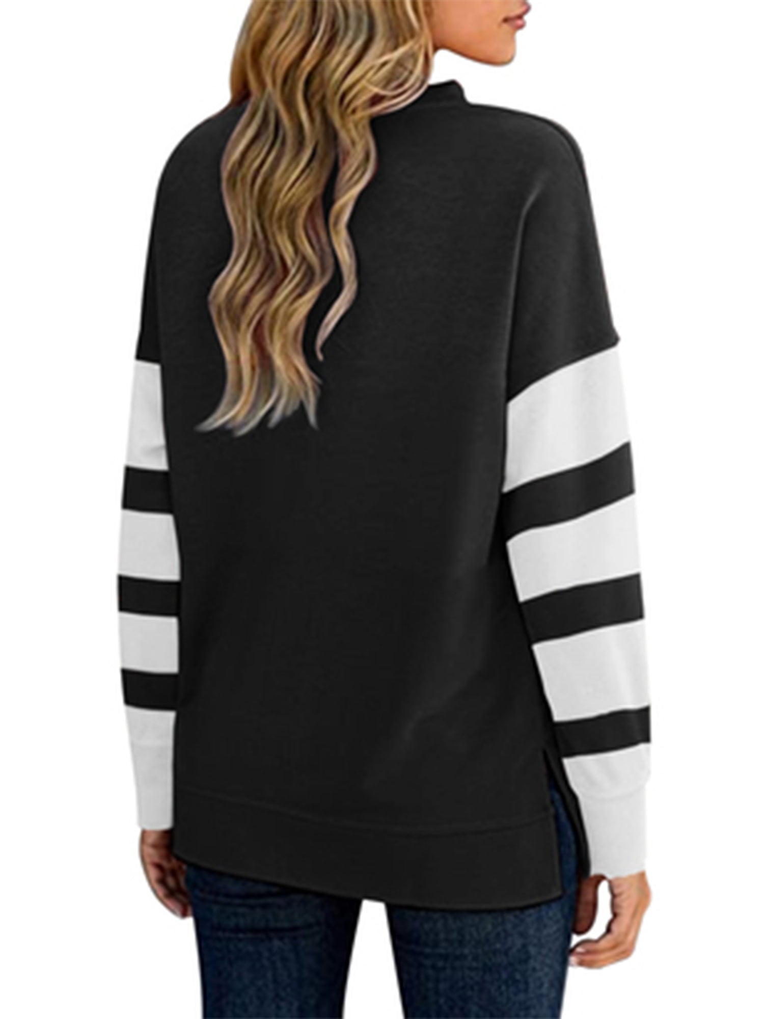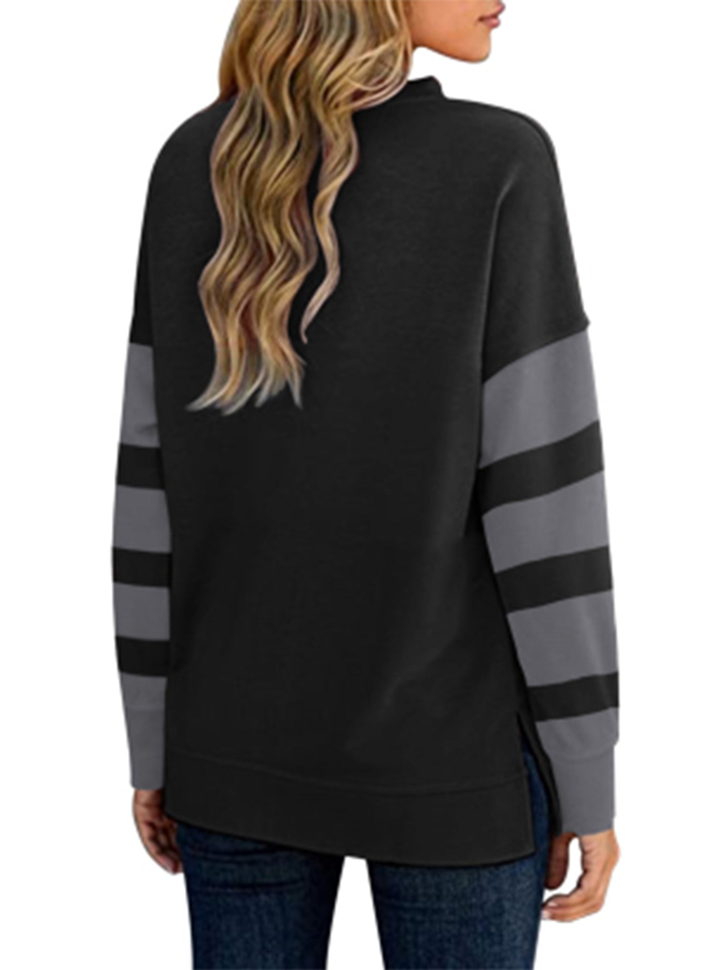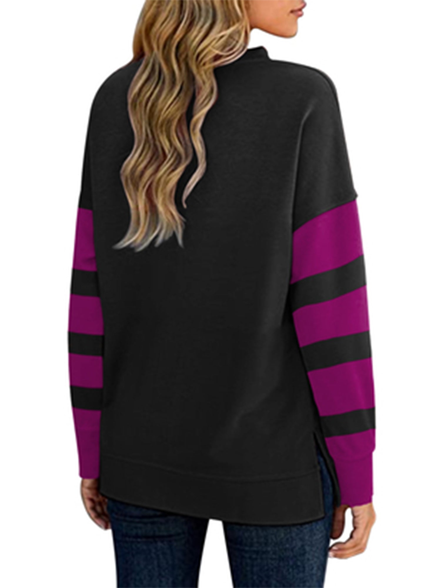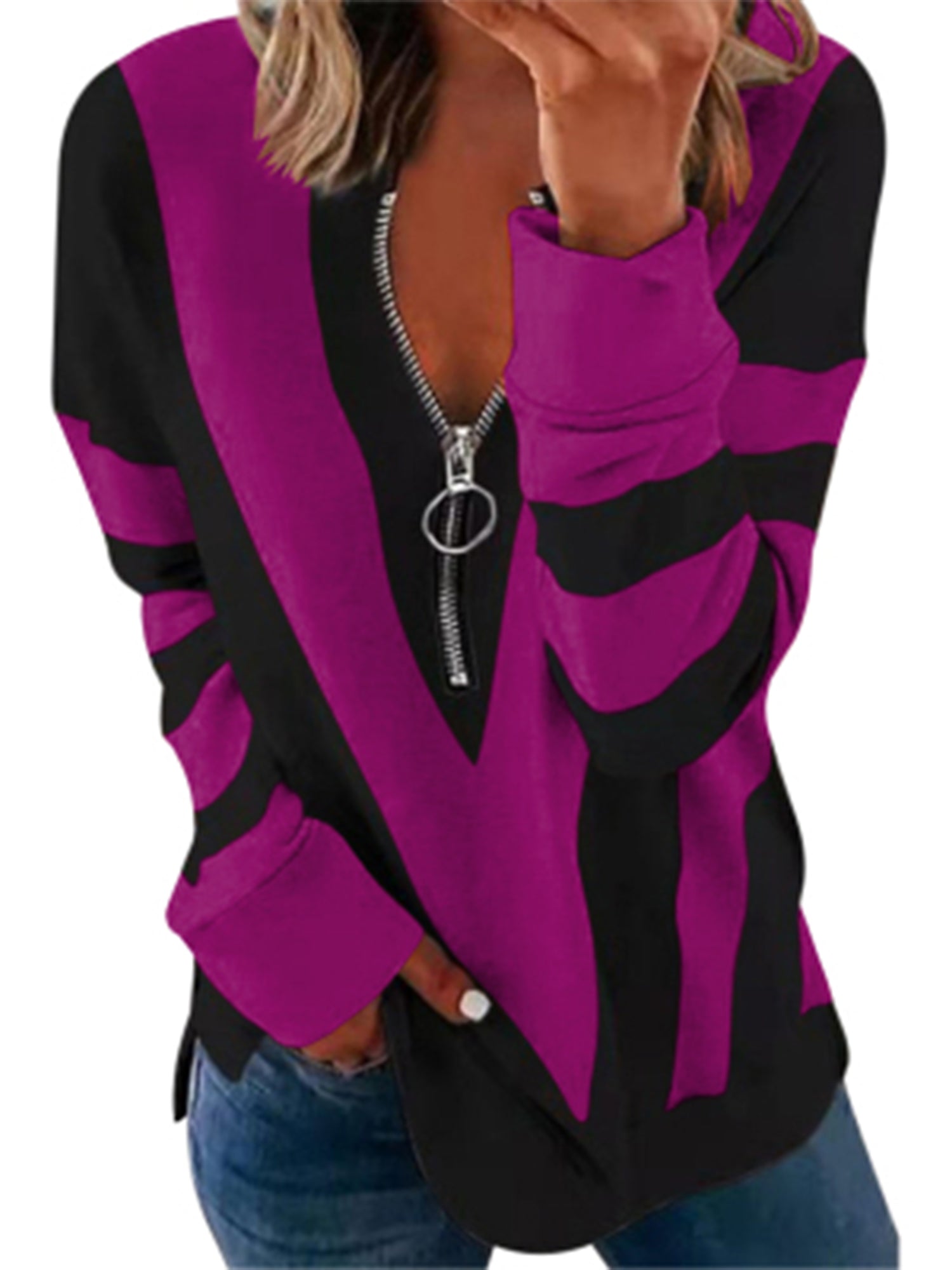 Sale Women's T-shirt Colorblock Long Sleeves Zipper Loose T-Shirt