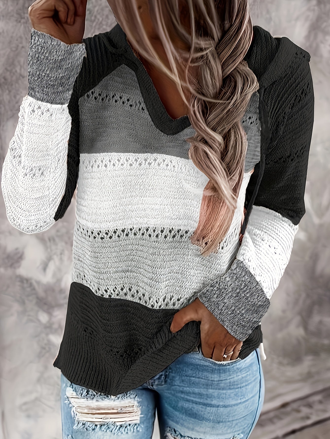Women's Vacation-Ready Color Block Hooded Knit Sweater